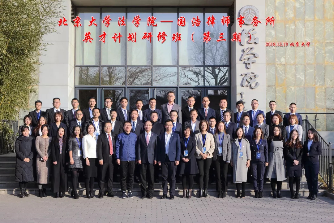 12月19日國浩北大英才培訓(第三期)在北京大學法學院凱原樓B102舉行開班儀式。北京大學法學院副院長楊曉雷教授、國浩律師事務所首席執行合伙人呂紅兵律師出席開班儀式并致辭。