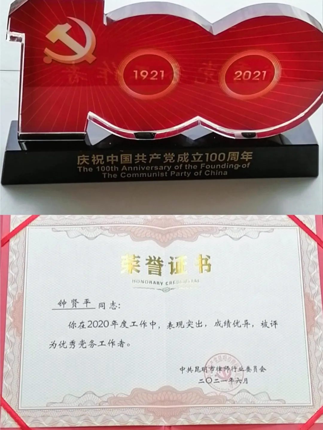 此前,昆明市律師行業黨委還于6月24日下午組織召開了“慶祝中國共產黨成立100周年大會”。國浩昆明黨支部榮獲了昆明市律師行業“先進基層黨組織”榮譽稱號,國浩昆明律師、黨支部紀檢委員鐘賢平榮獲昆明市律師行業“優秀黨務工作者”榮譽稱號。