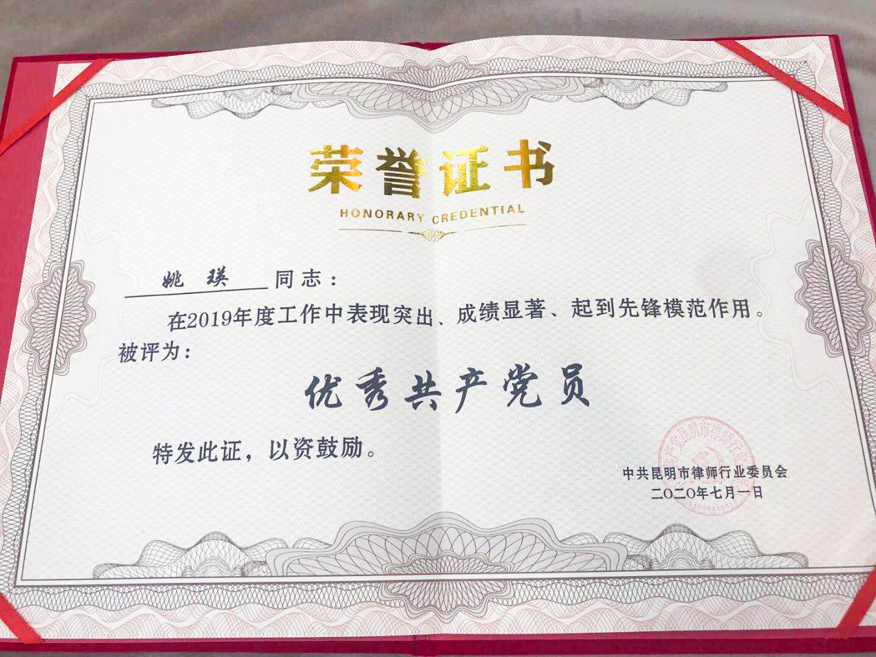 2020年7月1日,昆明市律師行業(yè)黨委組織開展慶祝中國共產(chǎn)黨成立99周年主題活動。大會上,國浩昆明辦公室被昆明市司法局授予“昆明市十佳律師事務所”稱號,國浩昆明管理合伙人聶智興被授予“昆明市十佳律師”稱號,國浩昆明律師姚瑛被授予“昆明市律師行業(yè)優(yōu)秀共產(chǎn)黨員”稱號。