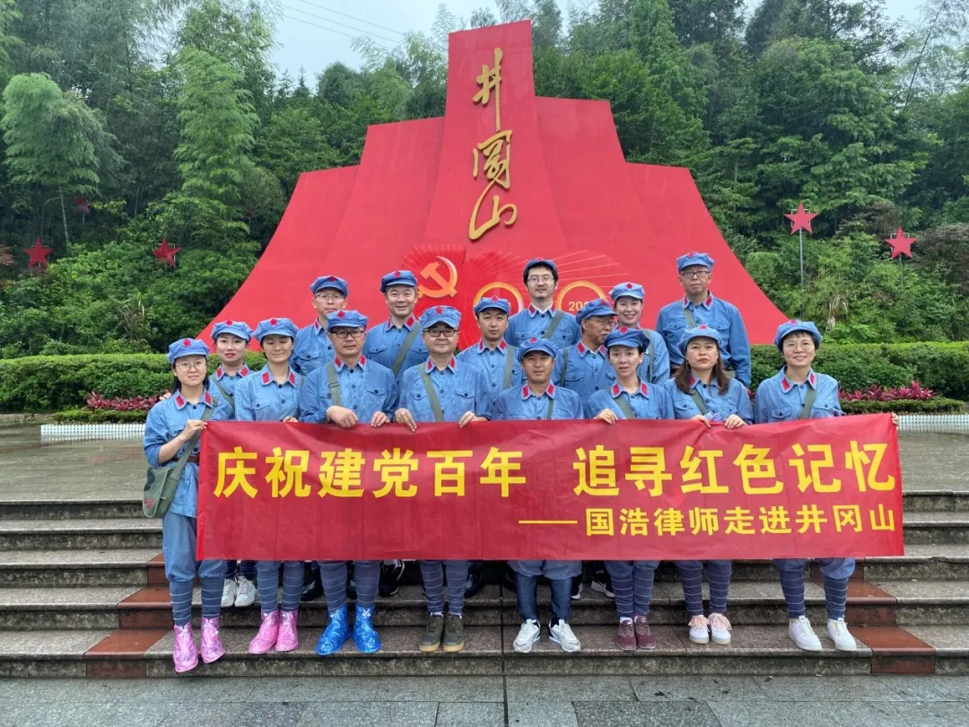 積極開展黨建活動,用行動致敬建黨百年。2021年6月25日,在國浩昆明黨支部的組織下,國浩昆明合伙人、黨支部書記韓嘉,國浩昆明管理合伙人、主任浦理斌,管理合伙人楊向紅、董事,合伙人寧植、張冰冰、唐云尉、楊繼軍、聶智興、呂江、馬偉、姜晶晶、浦恩皓及部分優秀黨員律師一行18人前往了江西省吉安市井岡山革命根據地,開展了以“慶祝建黨百年,追尋紅色記憶——國浩律師走進井岡山”為主題的黨建教育活動。