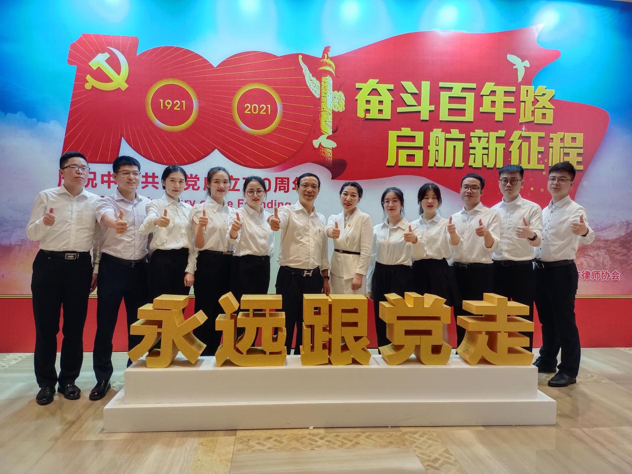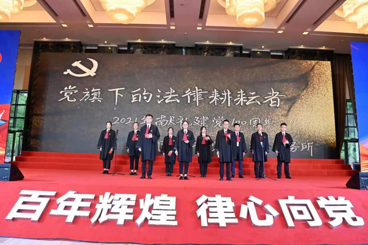 2021年6月25日,由武漢市律師行業(yè)黨委、武漢市律師協(xié)會(huì)主辦的“奮斗百年路 啟航新征程——武漢市律師行業(yè)慶祝中國(guó)共產(chǎn)黨成立100周年”主題活動(dòng)在武漢舉行,來(lái)自湖北省、武漢市律師行業(yè)黨委、律師協(xié)會(huì),市、區(qū)律師行業(yè)黨組織的代表等200余人參加。國(guó)浩武漢青年律師袁紛紛、胡超、馬怡飛、趙帥等共10人參加活動(dòng)并表演了詩(shī)朗誦《黨旗下的法律耕耘者》,向黨的百年華誕獻(xiàn)上祝福。