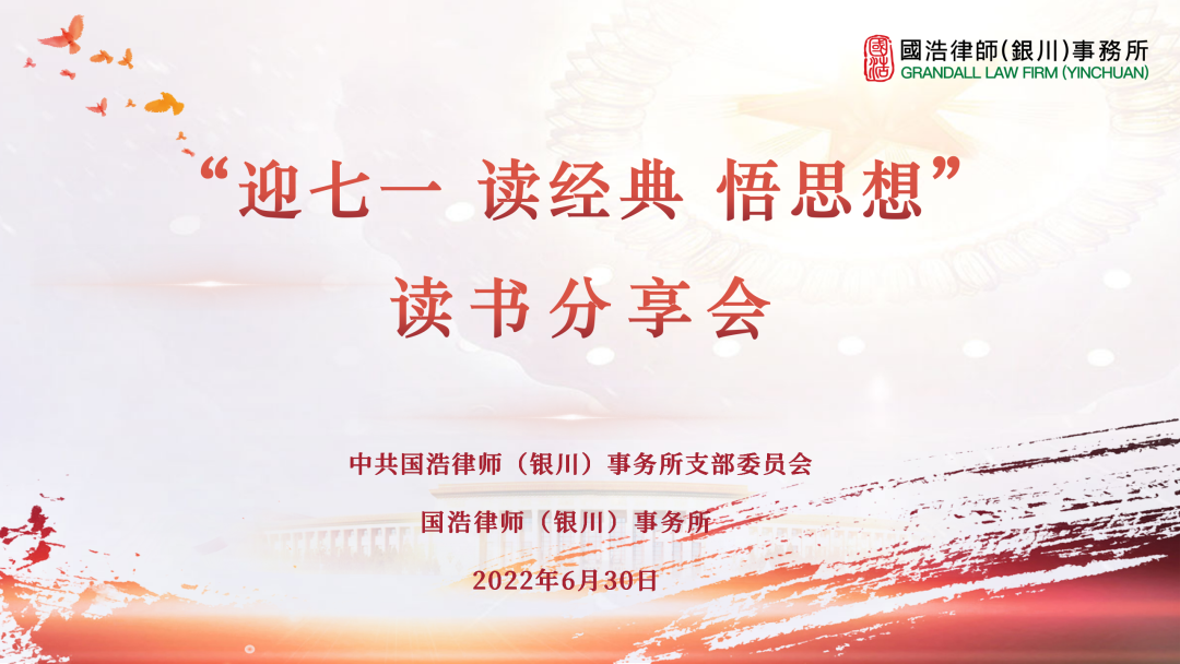 2022年6月30日下午,國浩銀川黨支部、國浩銀川辦公室組織開展了“迎七一、慶建黨、讀經典、悟思想”主題經典讀書會活動。本次活動由國浩銀川黨支部副書記、合伙人韓賓主持,國浩銀川合伙人馬勇,黨支部書記、合伙人李善鵬,支委委員、律師翟小春等參會。