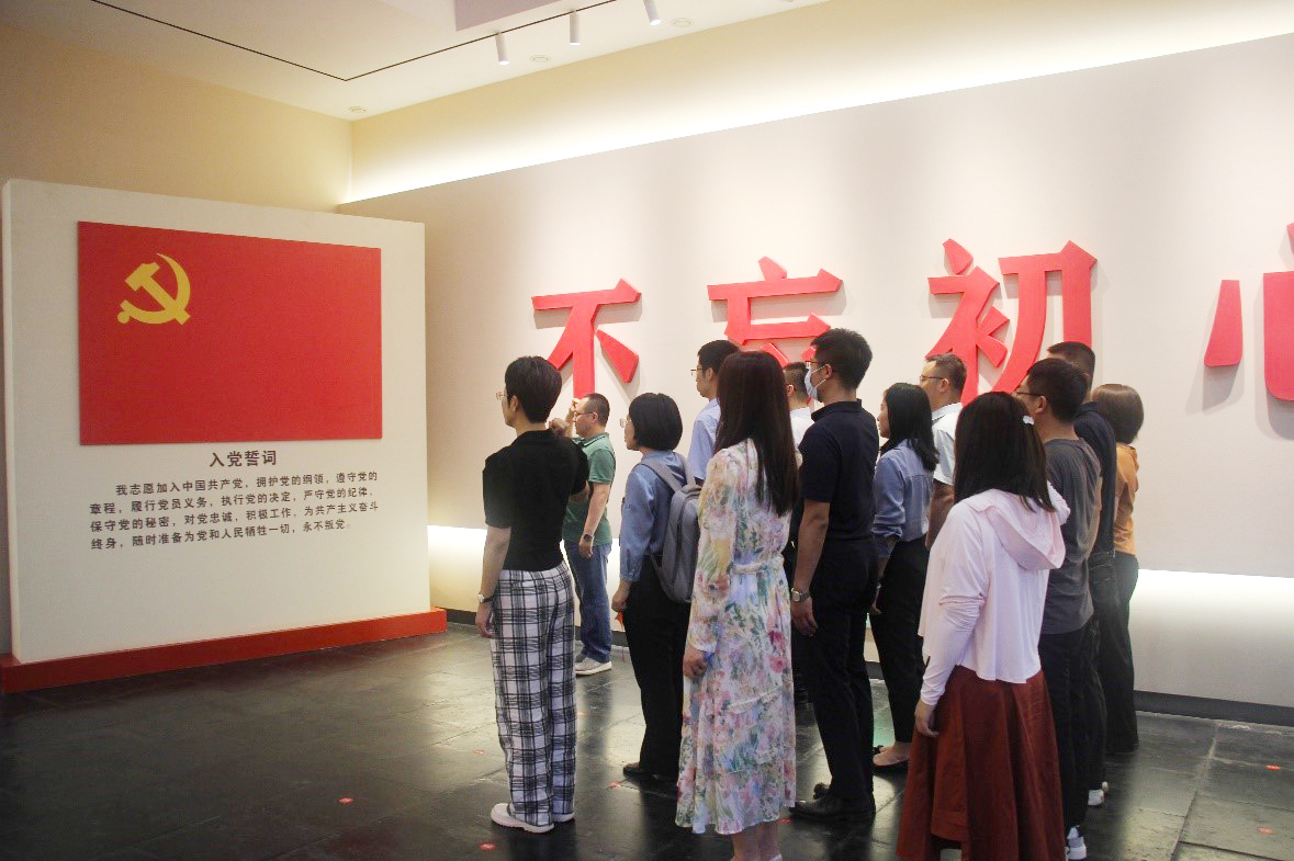 全體國浩太原黨員在展館大廳,面向鮮紅的黨旗,舉起右拳重溫入黨誓詞,許下對黨絕對忠誠的莊嚴承諾。