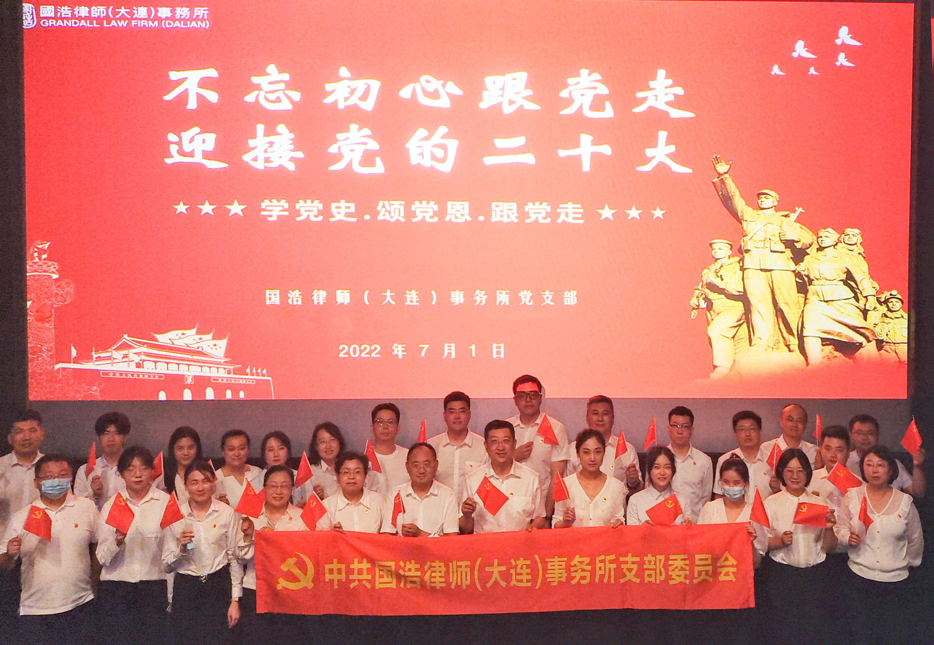 為深入學習宣傳貫徹習近平新時代中國特色社會主義思想和黨的十九屆六中全會精神, 2022年7月1日,國浩大連黨支部組織全體黨員、積極分子開展“不忘初心跟黨走,迎接黨的二十大”主題黨建活動。