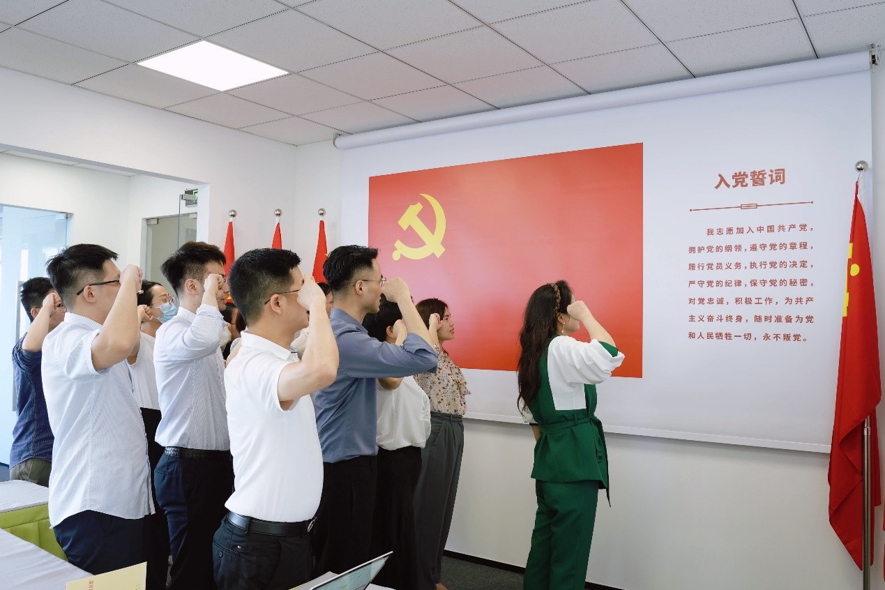 葛霞青書記帶領(lǐng)全體參會黨員及入黨積極分子面向黨旗,舉起右手,莊嚴(yán)宣誓,重溫入黨誓詞。鞭策全體黨員律師時刻警醒自己,牢記“黨員身份”和“入黨初心”,以實際行動,踐行理想信念、維護(hù)當(dāng)事人合法權(quán)益和社會公平正義。
