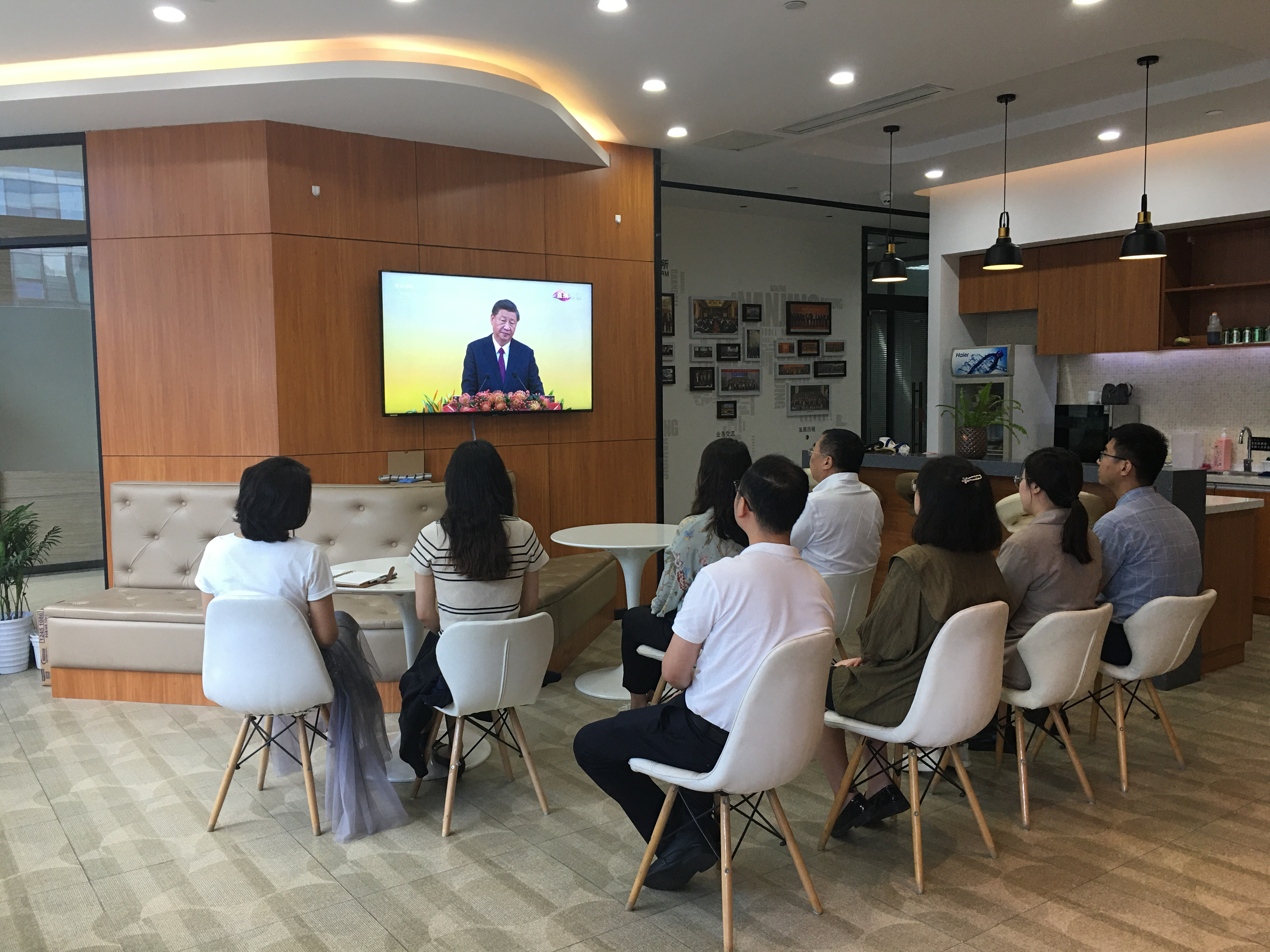 7月1日建黨節當天,國浩南京黨委通過線上、線下相結合的方式,組織國浩南京黨員集中收看了“慶祝香港回歸祖國25周年大會暨香港特別行政區第六屆政府就職典禮”直播。