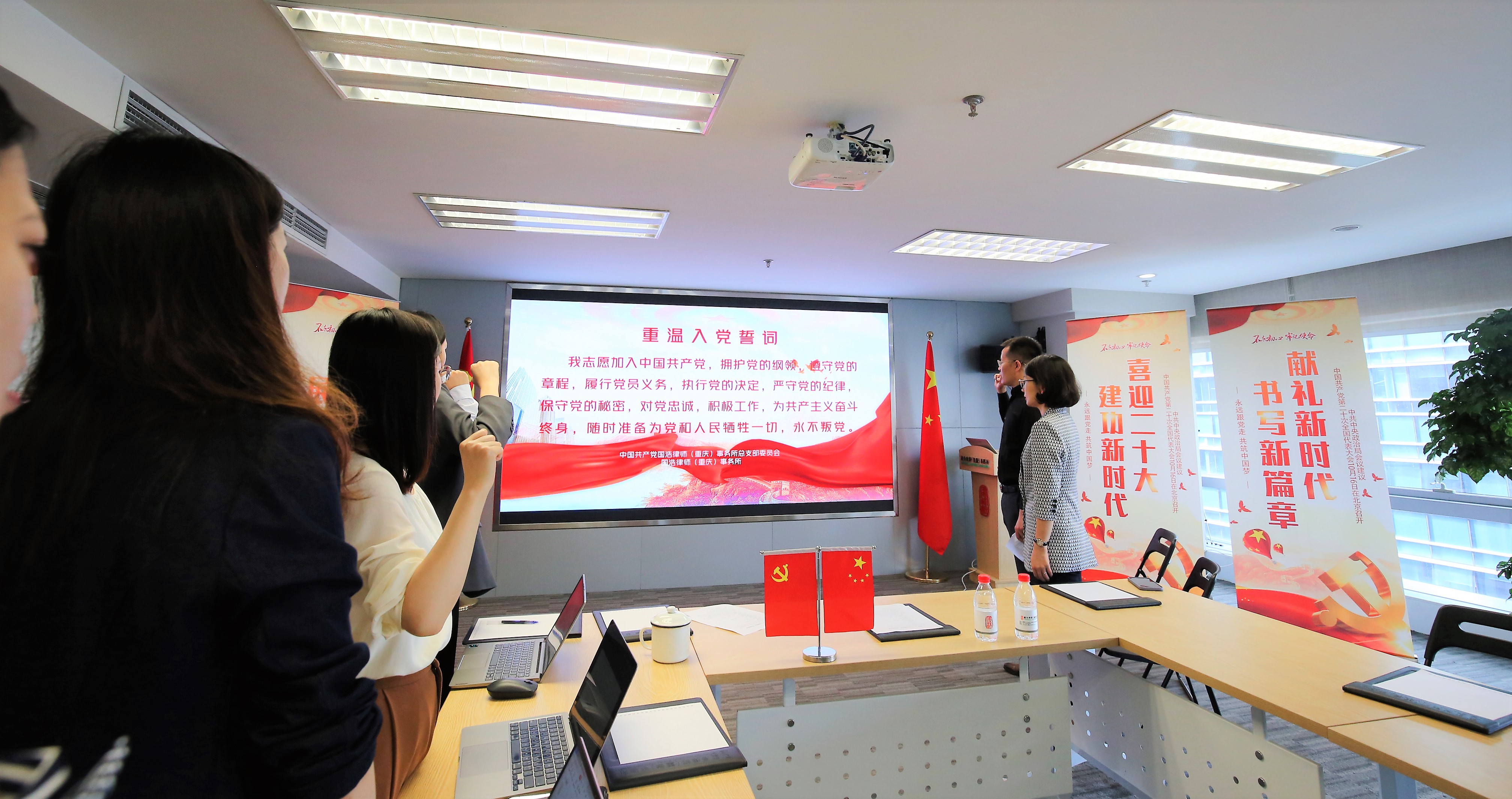 面對鮮紅的黨旗,全體國浩重慶黨員律師神情肅穆,重溫入黨誓詞,堅定而鏗鏘的誓言在活動現場久久回蕩。全體參會人員紛紛表示,將深刻把握開展本次主題黨日活動的重大意義,深刻領悟“兩個確立”的決定性意義,做黨和人民滿意的好律師,不斷強化奮進新征程、建功新時代的使命擔當,以優異的成績和扎實的工作迎接黨的二十大勝利召開。