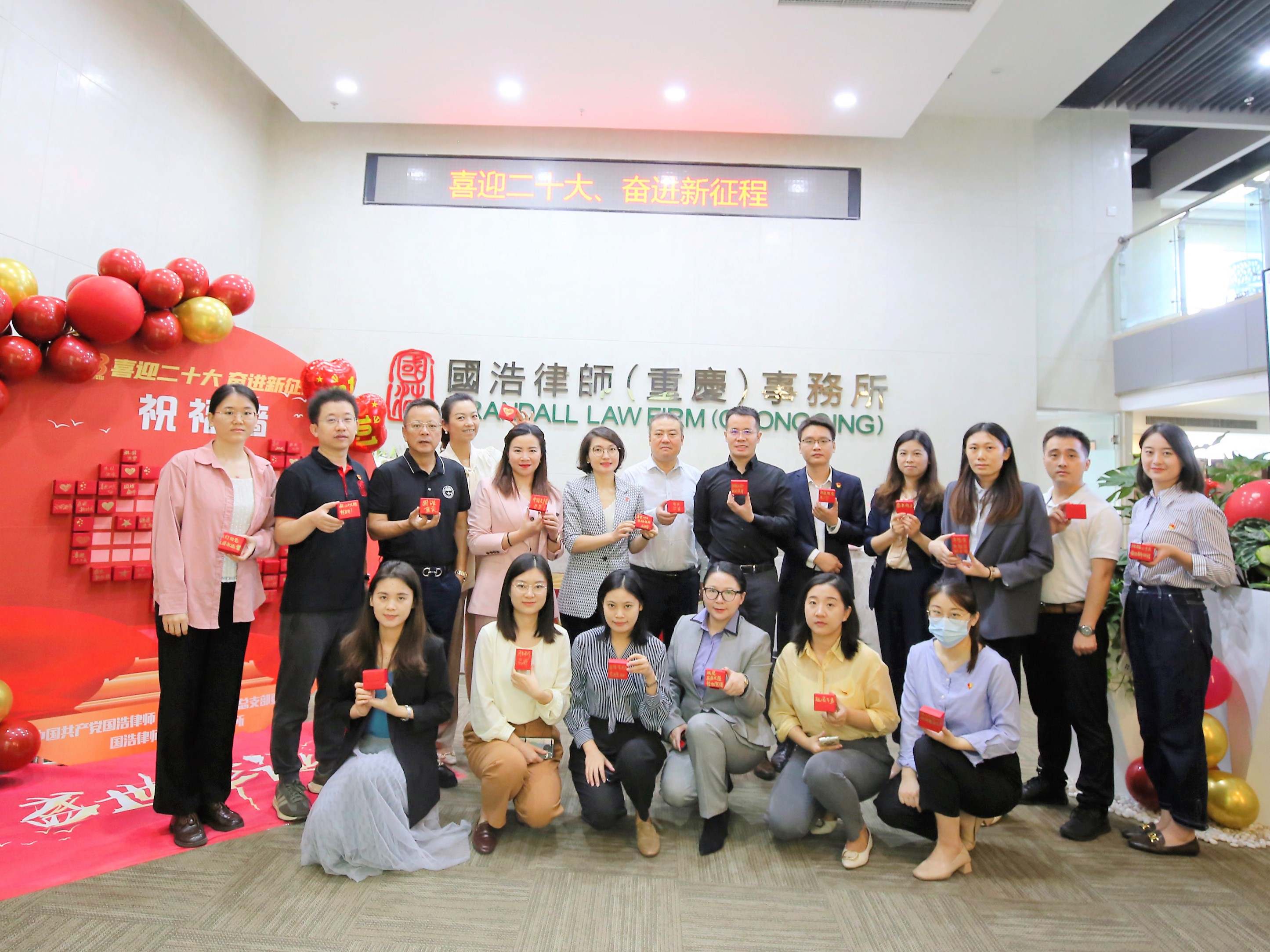 為慶祝中華人民共和國成立73周年,2022年9月29日,國浩重慶黨總支、國浩重慶辦公室管委會組織開展了“喜迎二十大、永遠跟黨走、奮進新征程”主題黨日活動。活動由國浩重慶黨總支書記、合伙人王致勇主持,國浩重慶管理合伙人、主任李尚澤,國浩重慶女工委主任、合伙人喬一清,以及國浩重慶各黨員律師、入黨積極分子、共青團員代表共同參加了本次活動,以實際行動熱切期盼二十大的勝利召開。