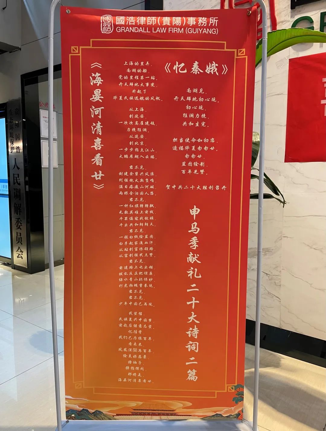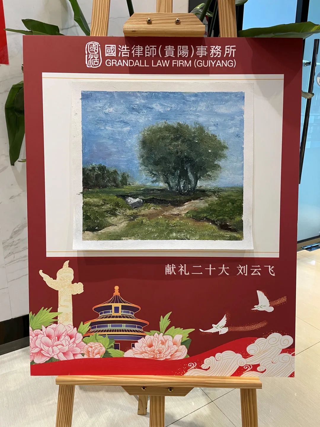 此外,國浩貴陽黨支部還組織開展了“我為二十大獻禮”主題活動。國浩貴陽黨員律師申馬季創作了詩詞《海晏河清齊看廿》《憶秦娥》,表達了一名老黨員的初心和對黨的忠誠;國浩貴陽律師劉云飛創作了油畫《為二十大獻禮》。