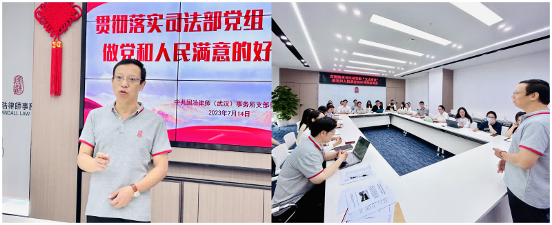 為深入學習貫徹習近平總書記關于“努力做黨和人民滿意的好律師”重要指示精神,響應和落實司法部黨組在律師工作座談會上對廣大律師提出的“五點希望”,積極響應全國律協倡議,2023年7月14日,國浩武漢黨支部組織召開學習司法部律師工作座談會精神會議。本次學習由國浩武漢黨支部副書記、律師胡斌主持。