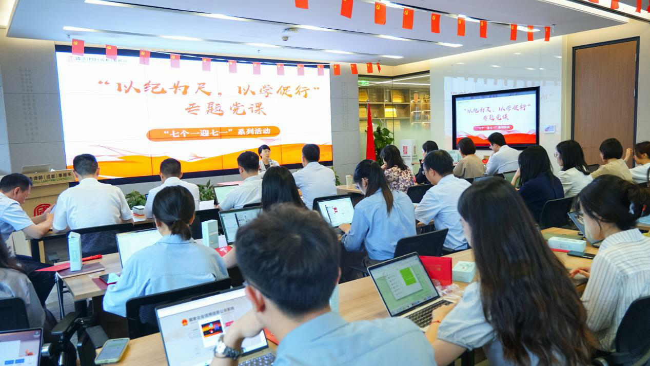 為深入學習貫徹《全省律師行業開展黨紀學習教育工作方案》的通知,進一步推動事務所黨紀學習教育深入開展,根據成都市律師行業黨委黨紀學習教育實施方案的要求,6月26日,國浩成都黨委組織開展“以紀為尺,以學促行”專題黨課,宋玲玲副書記為全體參會黨員授課。