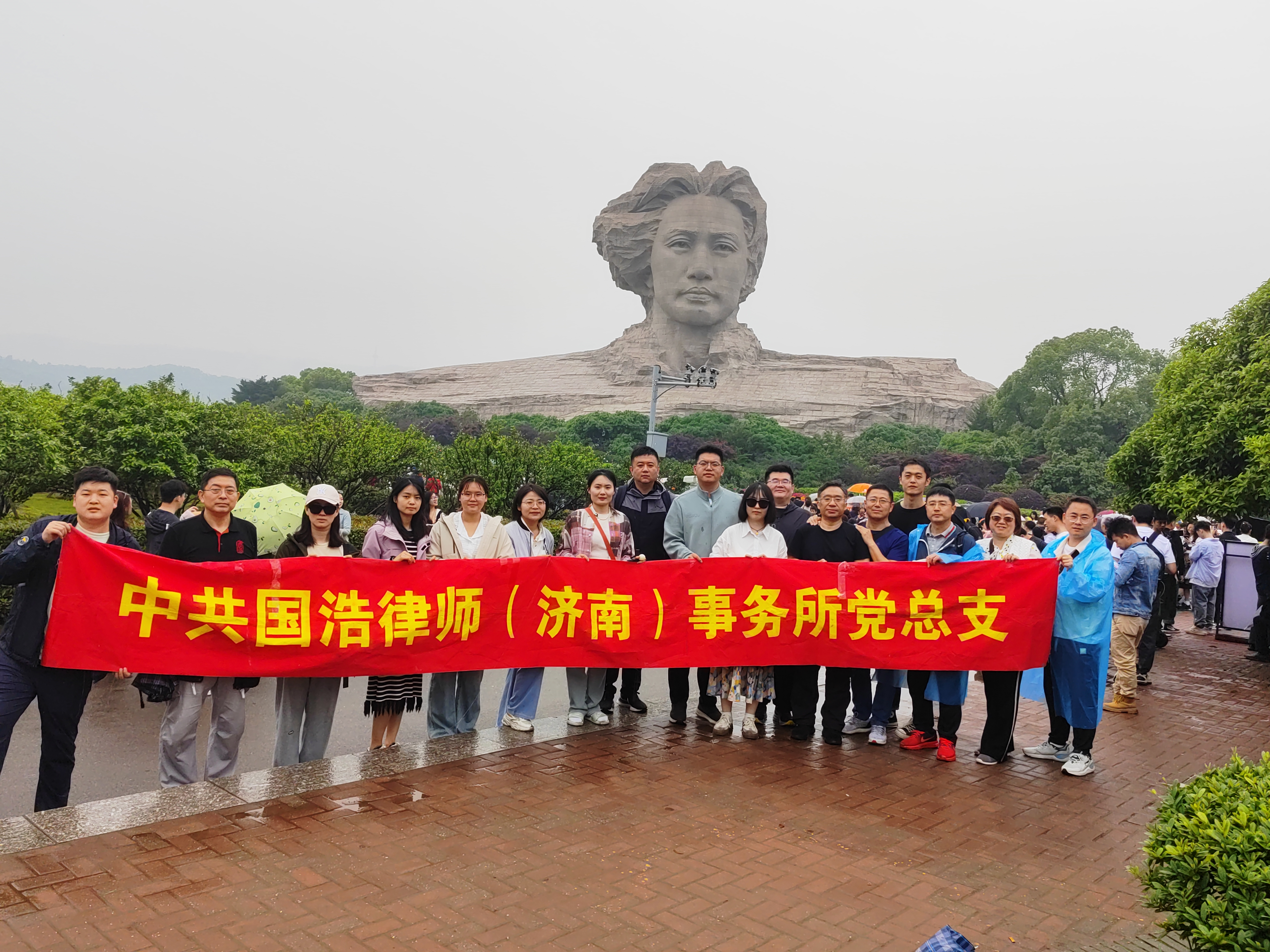 天地英雄氣,千秋尚凜然。在煙雨朦朧的賀龍公園,國浩濟南黨員們聆聽賀龍元帥戰功卓著、不畏犧牲、為黨和人民奮斗一生的光輝事跡,瞻仰賀龍元帥的陵墓和銅像,緬懷其“兩把菜刀鬧革命”的不朽功勛,寄托對偉人的崇高敬意和無限哀思。
