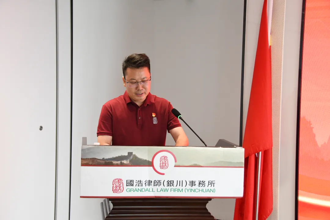 活動伊始,國浩銀川全體黨員在領誓人李善鵬律師的帶領下,面向鮮紅黨旗,重溫入黨誓詞,銘記初心使命。
