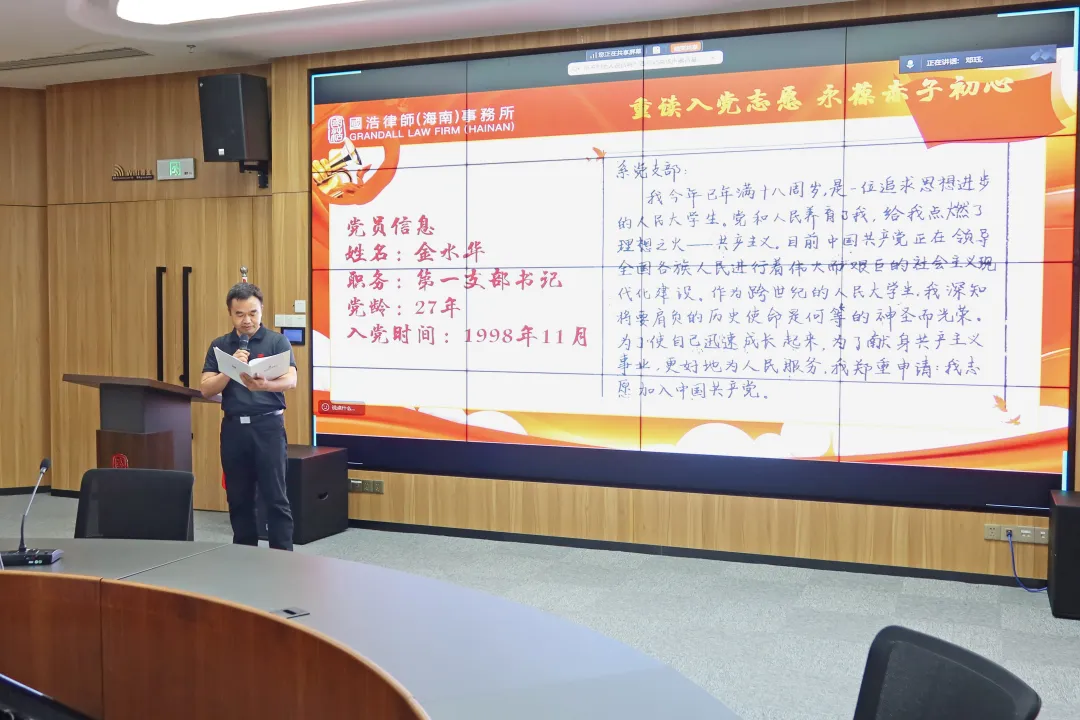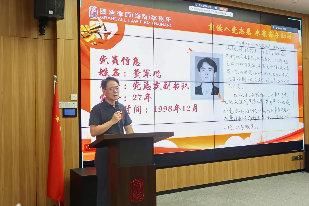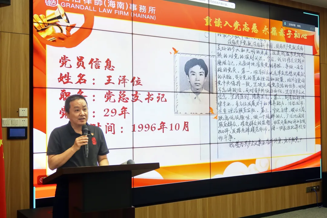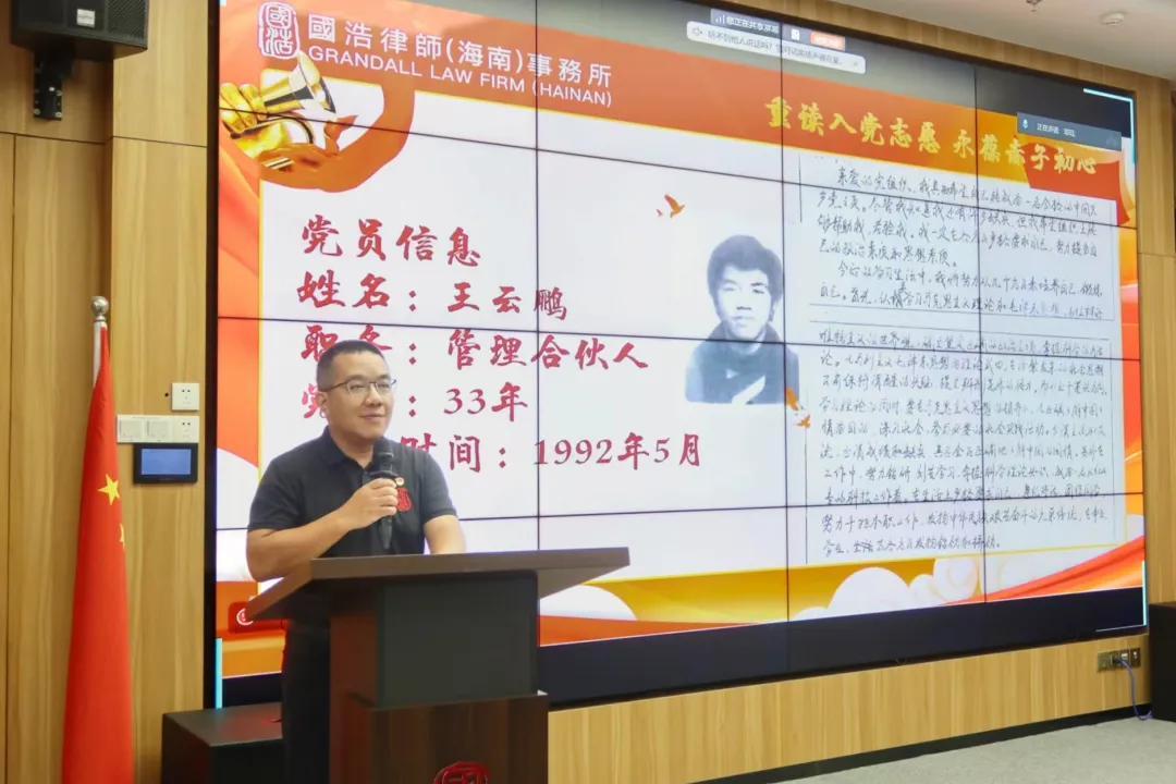 “當(dāng)再次捧起這份入黨志愿書(shū),滿(mǎn)眼都是當(dāng)年的熱血與承諾。33年前,我懷著對(duì)馬克思主義的堅(jiān)定信仰和對(duì)黨的無(wú)限忠誠(chéng),鄭重寫(xiě)下這份入黨志愿。33年歲月流轉(zhuǎn),無(wú)論身份如何轉(zhuǎn)變,共產(chǎn)黨人的政治本色沒(méi)有變,共產(chǎn)黨人的理想信念始終激勵(lì)和指引著我勇敢前行。”國(guó)浩海南管理合伙人、主任王云鵬深情地說(shuō)。