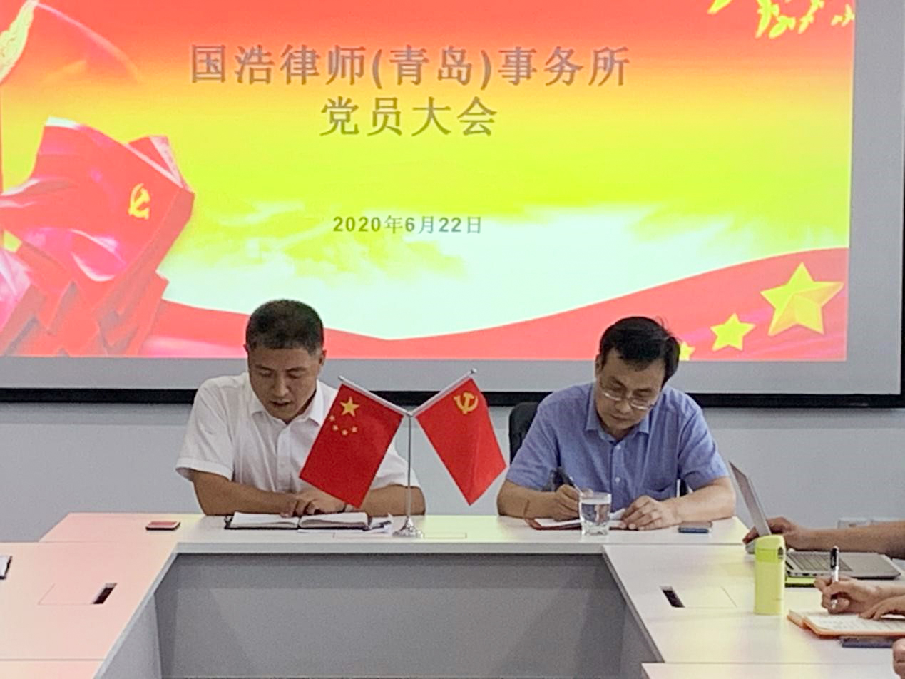 “七一”前夕,國浩青島黨支部召開全體黨員大會(huì)。大會(huì)由國浩青島黨支部書記王振寶主持,青島市司法局法律顧問和法律事務(wù)處處長張前進(jìn)出席,國浩青島全體黨員參加了本次會(huì)議。