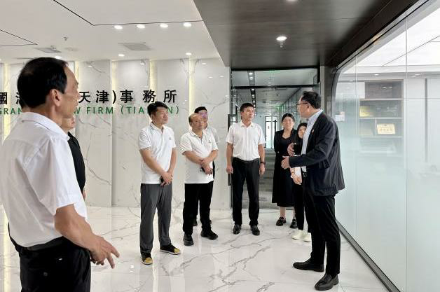 2024年7月3日,嘉峪關市司法局黨組成員、副局長、市律師行業黨委書記鄭浩,市律師行業黨委副書記、會長王勇,市律師行業黨委委員、副會長許陽,市律師行業黨委委員、秘書長殷建剛,甘肅聿凰律師事務所主任王曉雯,甘肅雄關律師事務所執行主任陶吉保,甘肅梓釗律師事務所執行主任張宇,市律師協會副秘書長、甘肅衡軒律師事務所律師馬海涌,甘肅河西律師事務所律師王興亮,市律師協會秘書董曉瑞一行蒞臨國浩天津辦公室考察交流。天津市律師協會副會長、國浩執行合伙人梁爽,國浩天津管理合伙人、主任韋祎,管理合伙人侯宇等陪同考察并參加座談交流。