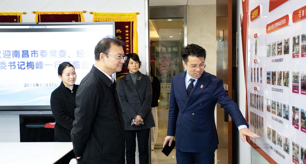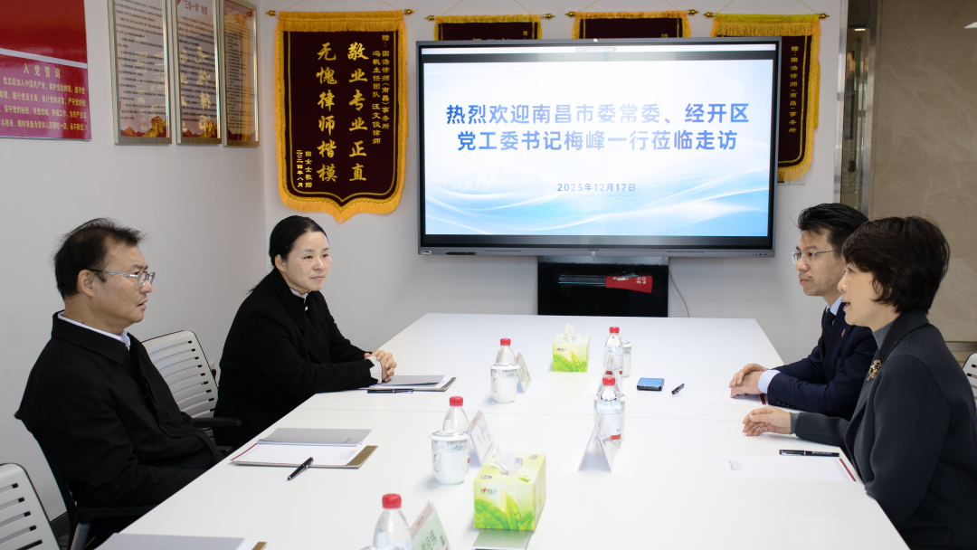 2025年12月17日,南昌市委常委、南昌經(jīng)濟(jì)技術(shù)開(kāi)發(fā)區(qū)黨工委書(shū)記梅峰蒞臨國(guó)浩南昌,走訪新的社會(huì)階層人士列名聯(lián)系對(duì)象——南昌市新的社會(huì)階層人士聯(lián)誼會(huì)(以下簡(jiǎn)稱“市新聯(lián)會(huì)”)副會(huì)長(zhǎng)兼秘書(shū)長(zhǎng),國(guó)浩南昌黨支部書(shū)記、管理合伙人蔡明,南昌市委統(tǒng)戰(zhàn)部副部長(zhǎng)呂璠陪同。國(guó)浩執(zhí)行合伙人,國(guó)浩南昌管理合伙人、主任馮帆等熱情接待。