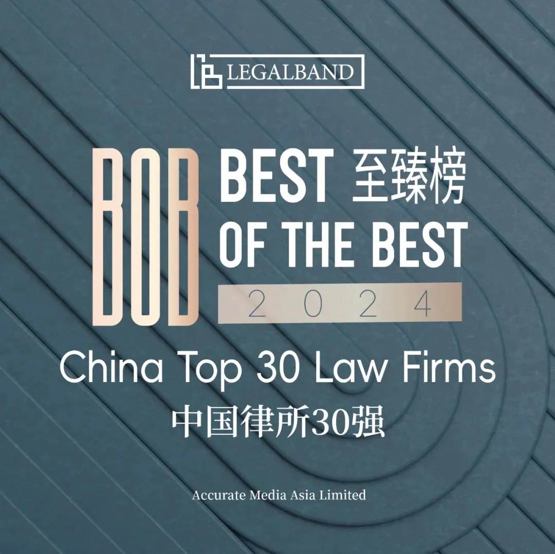 On 3 December 2024, LEGALBAND, a famous legal rating agency released the winners of “2024 LEGALBAND BOB China Top 30 Law Firms” and “2024 LEGALBAND BOB Top Ranked Lawyers”. “BOB” stands for “Best of the Best”, a special award launched by LEGALBAND for the first time. With its outstanding performance and good reputation among clients, Grandall has been honored the “2024 LEGALBAND BOB Top 30 Chinese Law Firms”. Meanwhile, LI Qiang, executive partner of Grandall and managing partner of Grandall Shanghai, and ZHOU Zheren, managing partner of Grandall Shanghai, have won the title of “2024 LEGALBAND BOB Top Ranked Lawyers”, respectively.