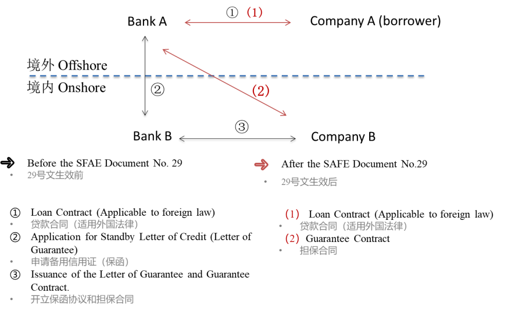 • What should be emphasized is that for other forms of cross-border guarantee agreements, the SAFE No.29 Document only removes the restriction on the guarantee signing process, but the creditor's claim for the guarantee right and the guarantor's performance of the guarantee obligation should still comply with the foreign debt, direct investment and securities investment regulations of the PRC.
