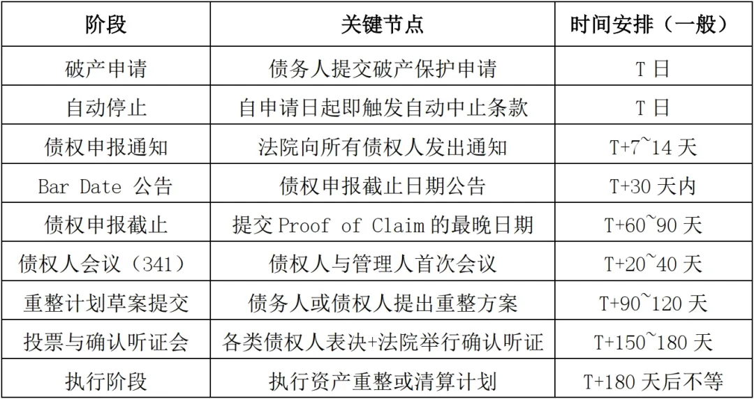 附錄二:跨境破產程序時間節點一覽表(以美國第11章程序為例)