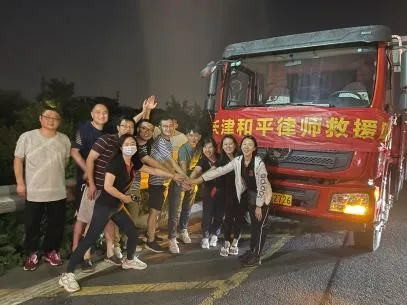 7月25日,梁爽律師發(fā)起組建救援隊的號召,希望帶領(lǐng)大家馳援河南,參與救援及災(zāi)后重建工作。12小時內(nèi),以國浩天津為主的天津和平律師救援隊迅速組建并完成救援知識培訓(xùn)。當(dāng)晚,由梁爽律師帶領(lǐng)、國浩天津律師張永泉、范曉東、王晶,律師助理王文、江連題、毛梓先、劉道光以及實習(xí)律師左健僑、黃樹鳳等組成的第一批天津和平律師救援隊,帶著由國浩天津聯(lián)合其他律所共同募集的70頂帳篷以及強(qiáng)光燈、救生衣、衣物等災(zāi)區(qū)急需的第二車物資,連夜踏上奔赴新鄉(xiāng)牧野的征程。