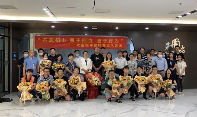 在平原(建業(yè))體育中心,國浩天津律師與當(dāng)?shù)刂驹刚吖?0人一起卸下一路護(hù)送來的帳篷、衣物、強(qiáng)光燈等災(zāi)區(qū)急需的物資,其中,張永泉律師因搬運70頂帳篷而受了腰傷,導(dǎo)致后續(xù)無法全程參加救援,但他仍然咬牙堅持,繼續(xù)為其他隊員進(jìn)行健康防護(hù)上的指導(dǎo)。在河南帝隆車業(yè)有限公司倉庫,當(dāng)?shù)弥@個新建立的大型物救援資集散地的倉庫只有4名工作人員,工作任務(wù)沉重的時候,國浩天津律師立即趕來,分組倒班地幫助調(diào)度來自全國各地的運輸車輛,保障物資接收和發(fā)放工作有序開展。在世青國際小學(xué),國浩天津律師與藍(lán)天救援隊一起,妥善解決了周邊區(qū)域物資的有序發(fā)放問題。在新鄉(xiāng)市牧野區(qū)王村鎮(zhèn)防汛指揮中心,大家協(xié)助登記錄入物資信息、幫助村民搬運物資。在牧野區(qū)發(fā)展和改革委員會,大水退去的辦公區(qū)滿是泥沙、散發(fā)惡臭,國浩救援隊成員迅速組織起來,用最快的速度搶救被水泡過的文件和賬本,清理垃圾,為發(fā)改委后續(xù)的復(fù)建工作贏得了時間。救援隊的工作收獲了當(dāng)?shù)卣⑵髽I(yè)和群眾的肯定,獲得了牧野區(qū)發(fā)改委“當(dāng)?shù)亍镔Y捐獻(xiàn)最精準(zhǔn)、人員投入最精準(zhǔn)、安排工作最精準(zhǔn)’的救援隊伍之一”的褒揚,《法治日報》《天津日報》等媒體也紛紛刊發(fā)了救援隊的先進(jìn)事跡。