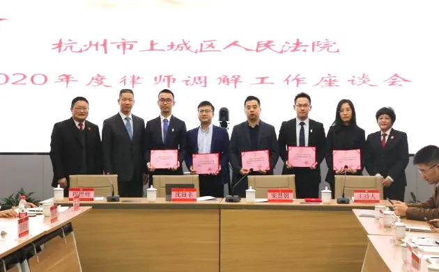 2020年12月18日上午,杭州市上城區人民法院召開了2020年度律師調解工作座談會,杭州市上城區人民法院專職委員宋慧娟、訴訟服務中心主任程煜峰,國浩執行合伙人沈田豐、國浩杭州管理合伙人何利鋒,及國浩杭州等21家律所的律師代表參加了本次會議。國浩杭州律師謝佳超、許多多、鄧亞軍、毛艷婷、謝明輝、水思思因調解工作的出色表現,榮獲“2020年度優秀律師調解員”榮譽稱號。