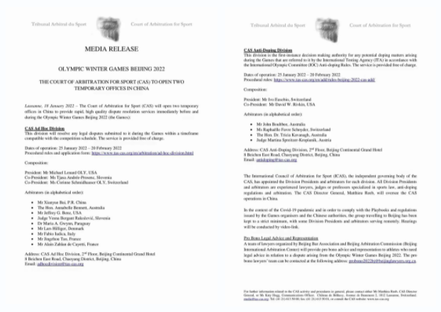 2022年1月18日,國際體育仲裁院(Court of Arbitration for Sports, 簡稱CAS)發(fā)布官宣(www.tas-cas.org ),按照國際奧委會(huì)的要求,確定將在2022年北京冬奧會(huì)期間建立奧運(yùn)特設(shè)仲裁庭(包含兩個(gè)辦公室),為冬奧會(huì)提供快速、高效的爭議解決服務(wù)。國浩天津管理合伙人白顯月被任命為2022北京冬奧會(huì)CAS特設(shè)仲裁庭(簡稱CAS AHD)仲裁員。