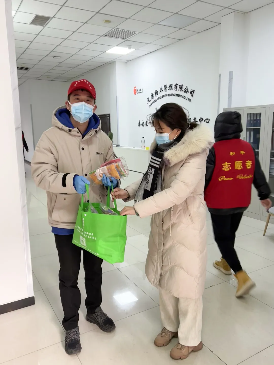 值得一提的是,在本次篩查工作開展前,國浩天津的9位志愿者及1位國浩家屬提前分工,連夜設計并制作出了“自制簡易識別身份證掃碼機”,不僅便捷高效,還減少了交叉感染的可能,該項應用已在和平區小白樓街得到了推廣應用。此外,國浩天津志愿隊后勤保障員王琳還在嚴寒中騎著自行車跑遍附近藥店采購,為志愿者們準備了裝有巧克力、餅干、消毒濕巾、暖貼、暖足貼、火腿腸的愛心包。