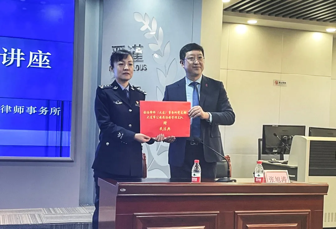 講座開始前,張旭濤書記首先向大連市公安局治安管理支隊捐贈了《民法典》,并代表國浩大連向在座的人民警察致以了節(jié)日問候和崇高敬意。