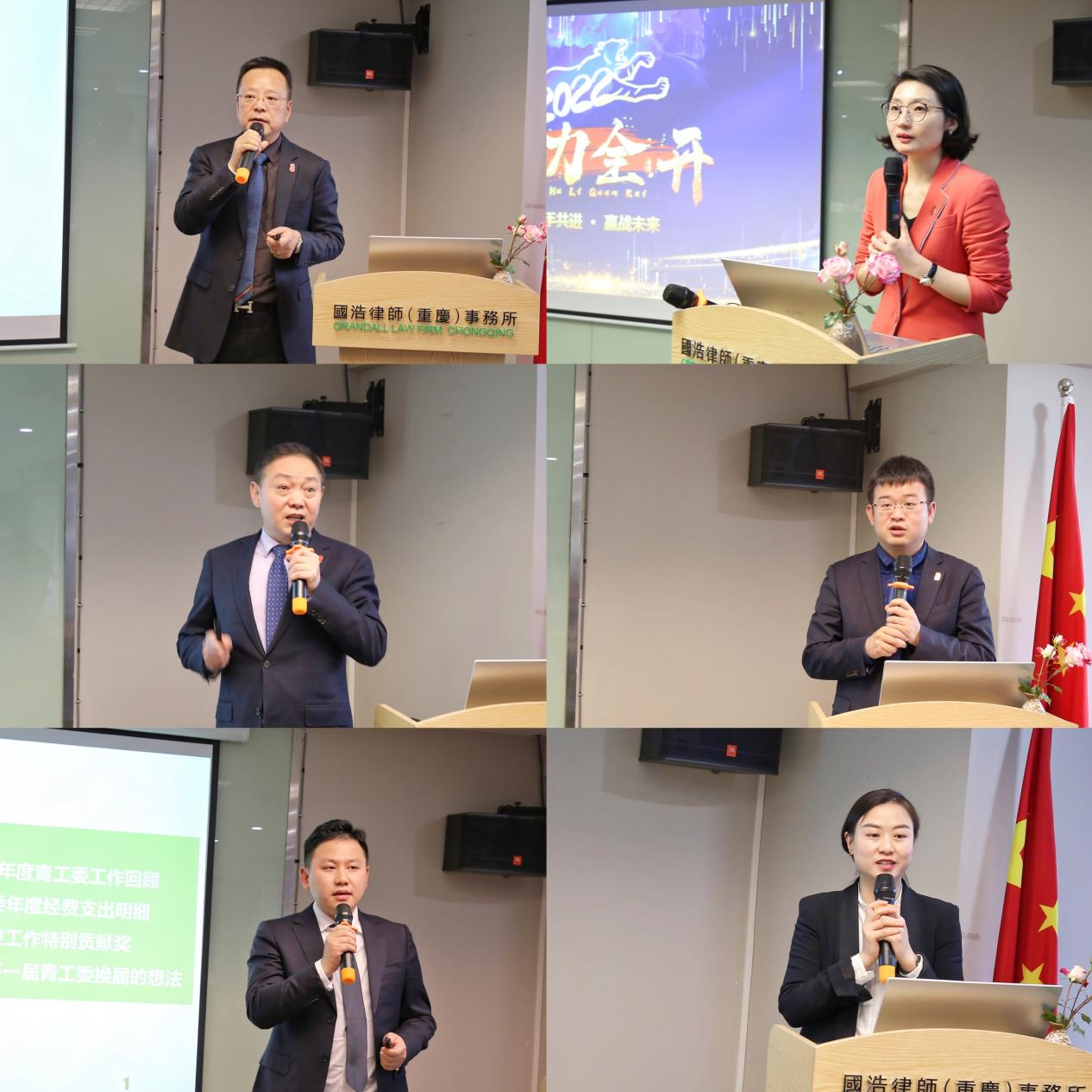 2021年,對(duì)國浩重慶來說是具有重要意義的一年,是值得被銘記的一年。這一年里,國浩重慶在全體員工的齊心協(xié)力下獲得了新的突破。會(huì)議首先由國浩重慶黨支部、管委會(huì)、監(jiān)委會(huì)、女工委及青工委各個(gè)職能版塊分別進(jìn)行了年度述職,各位分管合伙人言簡(jiǎn)意深,既對(duì)2021年度工作開展情況及工作成果向全體合伙人進(jìn)行了匯報(bào),也是立足律所,展望未來,對(duì)來年的工作方向和計(jì)劃都作了深度的思考和暢想。