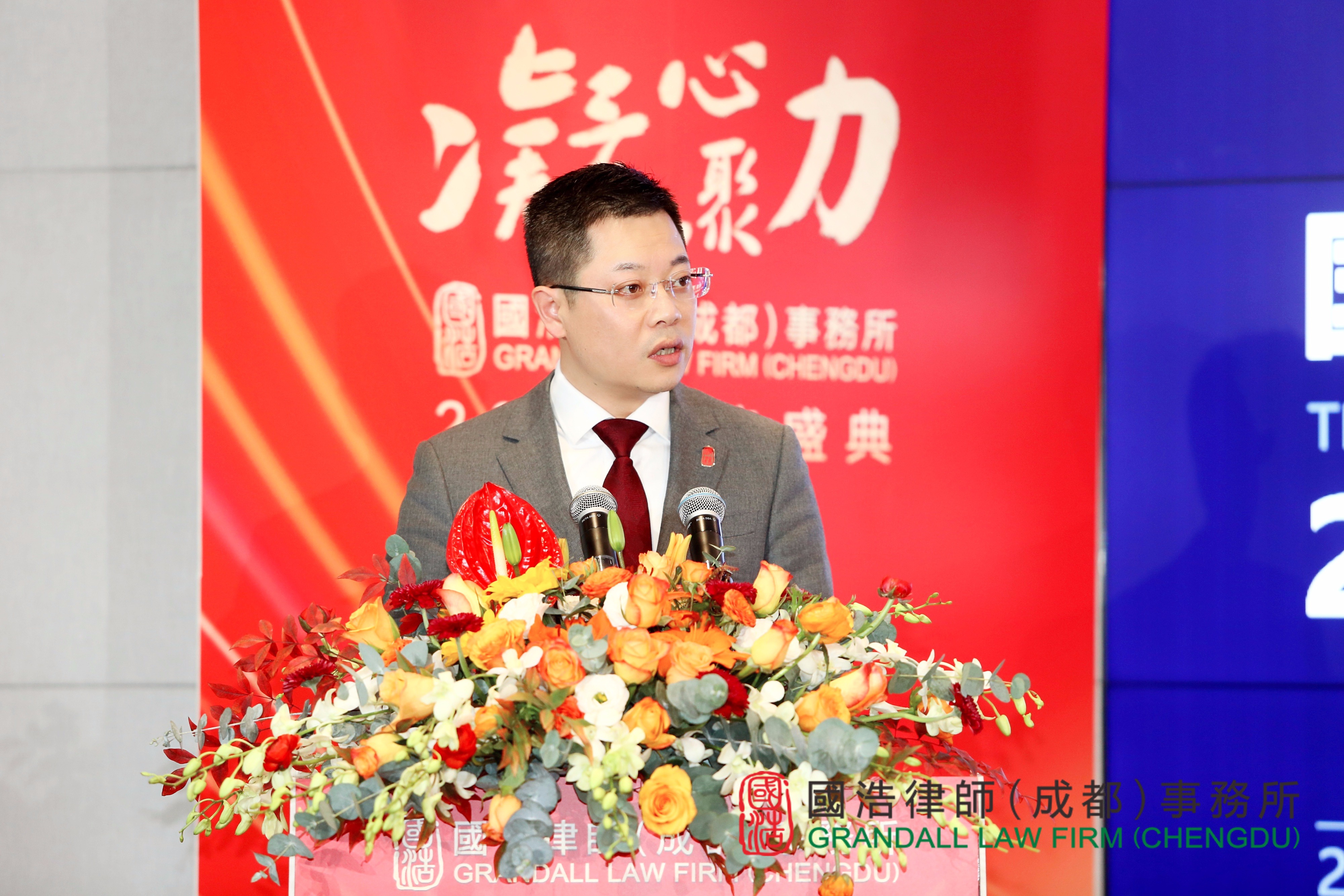 國浩成都管理合伙人、主任盧曉東從國浩成都的業績、人員整體情況、獲獎與榮譽、國浩大事記4個方面總結2021年,勉勵大家在新的一年以初心擔使命、以卓越致青春;以熱愛赴山海,以夢想致未來,共筑國浩夢。隨后,國浩成都合伙人石波進行了新年致辭,他表示國浩成都的發展處在“雖比高飛雁,猶未及青云”的階段,共筑國浩夢,我們應當上下求索,馳而不休。