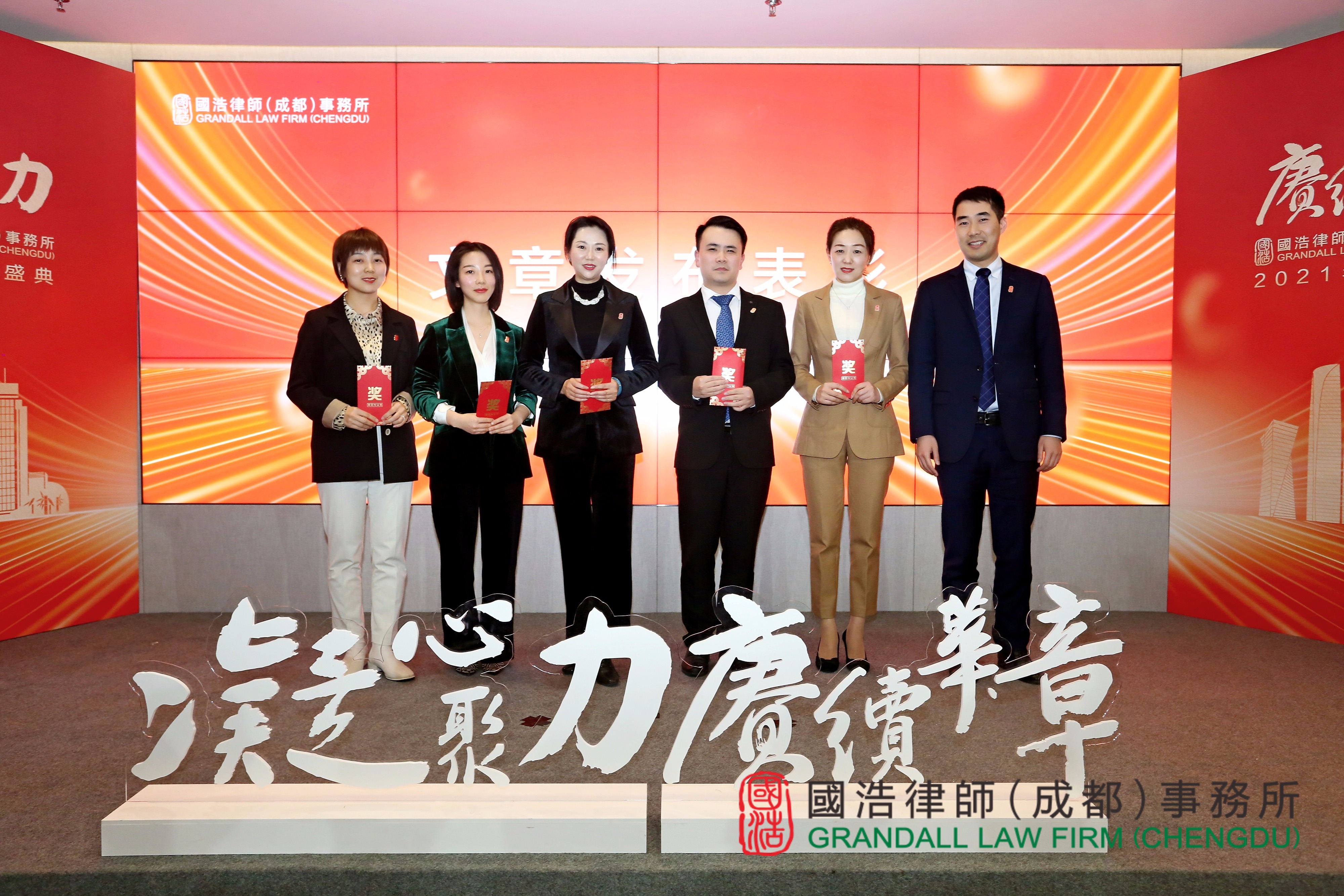 朝乾夕惕,功不唐捐;青衿之志,履踐方能致遠。這一份榮譽,是對過去的認可,更是對未來的鞭策。大會上,國浩成都頒發了“優秀訴訟案件”“優秀非訴訟項目”“文章發布表彰”“ 優秀員工 ”“優秀律師助理”“年度新銳”“特殊貢獻獎”“優秀律師”“優秀黨員律師”“優秀合伙人”等多項大獎。