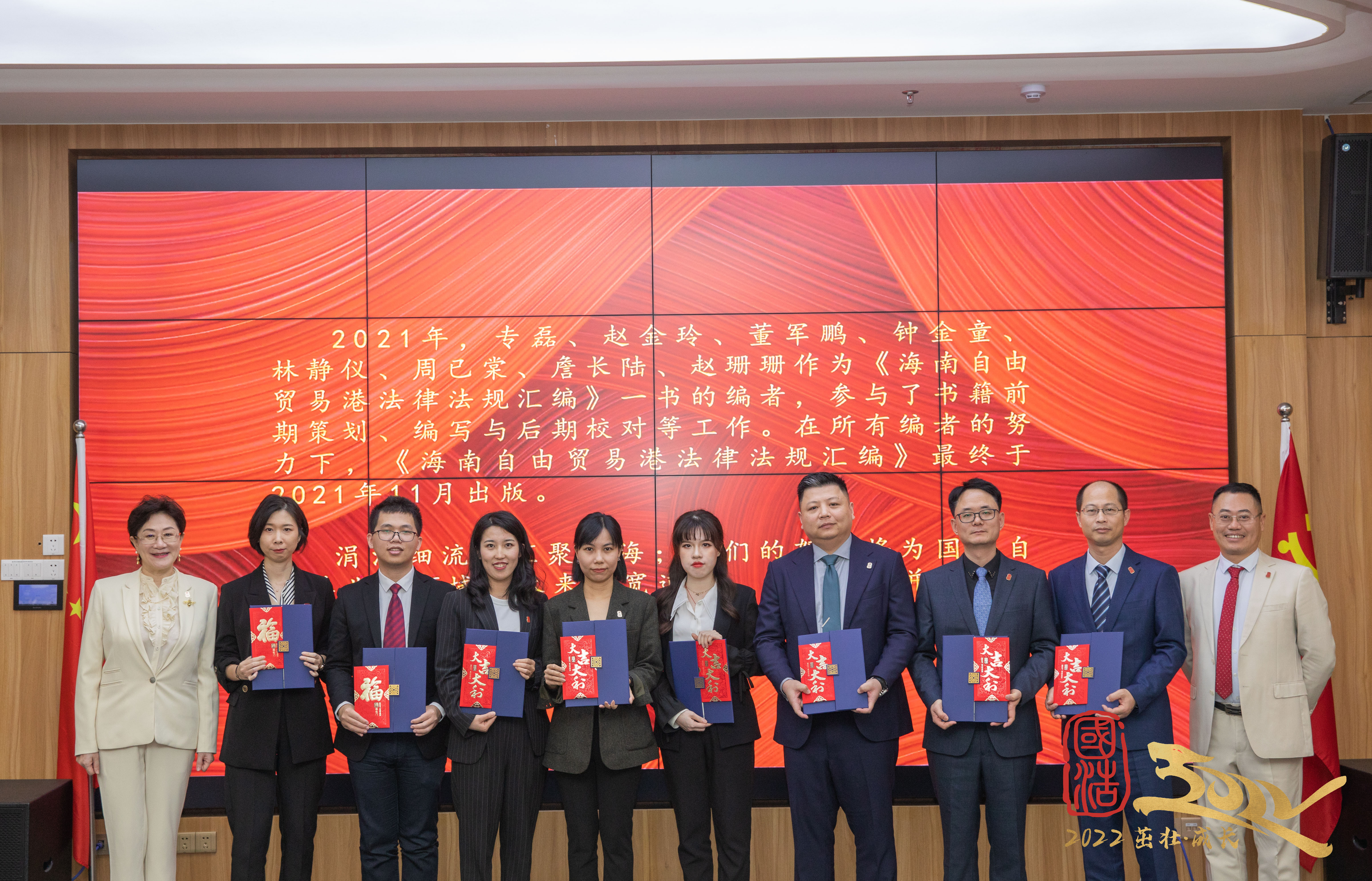 會上,海南中改國浩自貿港法律研究中心作為《海南自由貿易港法律法規匯編》一書的編者,對參與編纂的國浩海南合伙人專磊,律師董軍鵬、趙金玲,鐘金童、林靜儀、周已棠、趙珊珊、詹長陸共8位人員進行了表彰,以期鼓勵國浩律師更好地服務海南自貿港建設大局,發揮自身在自貿港法律制度研究領域所長。《海南自由貿易港法律法規匯編》已于2021年11月由海南出版社正式出版發行。
