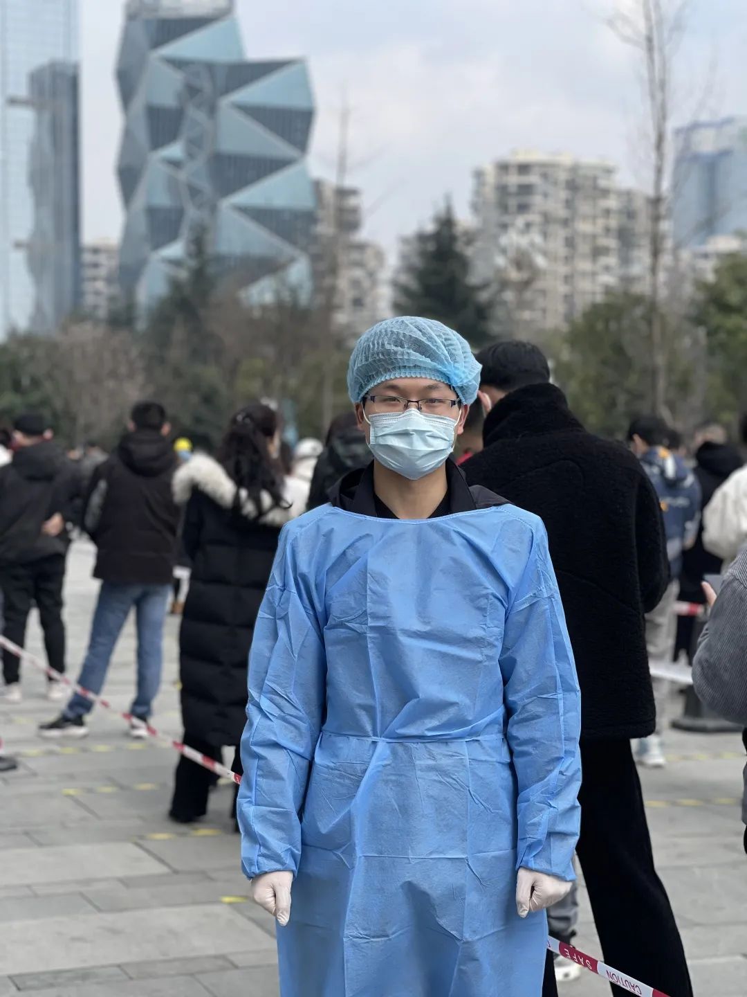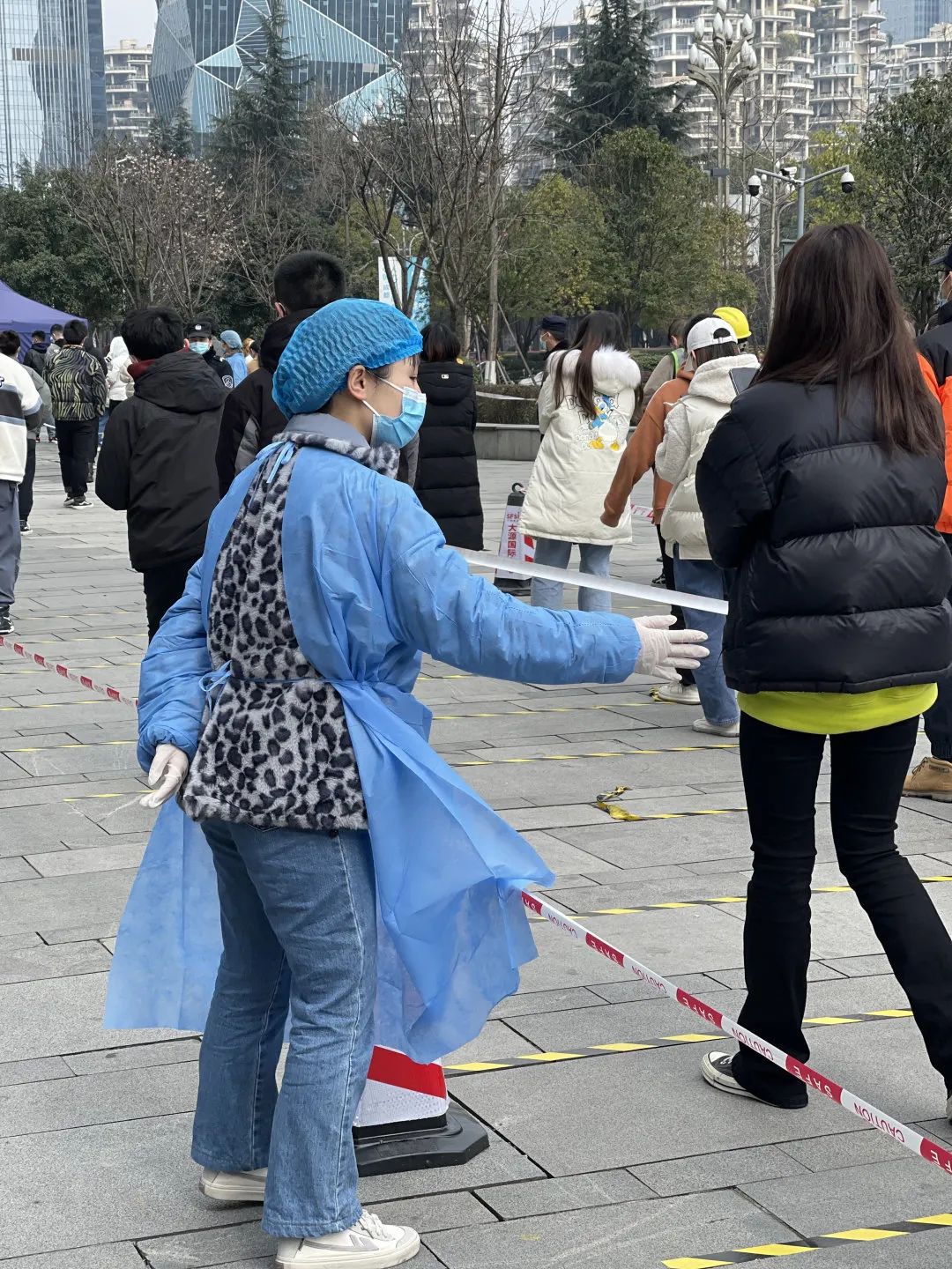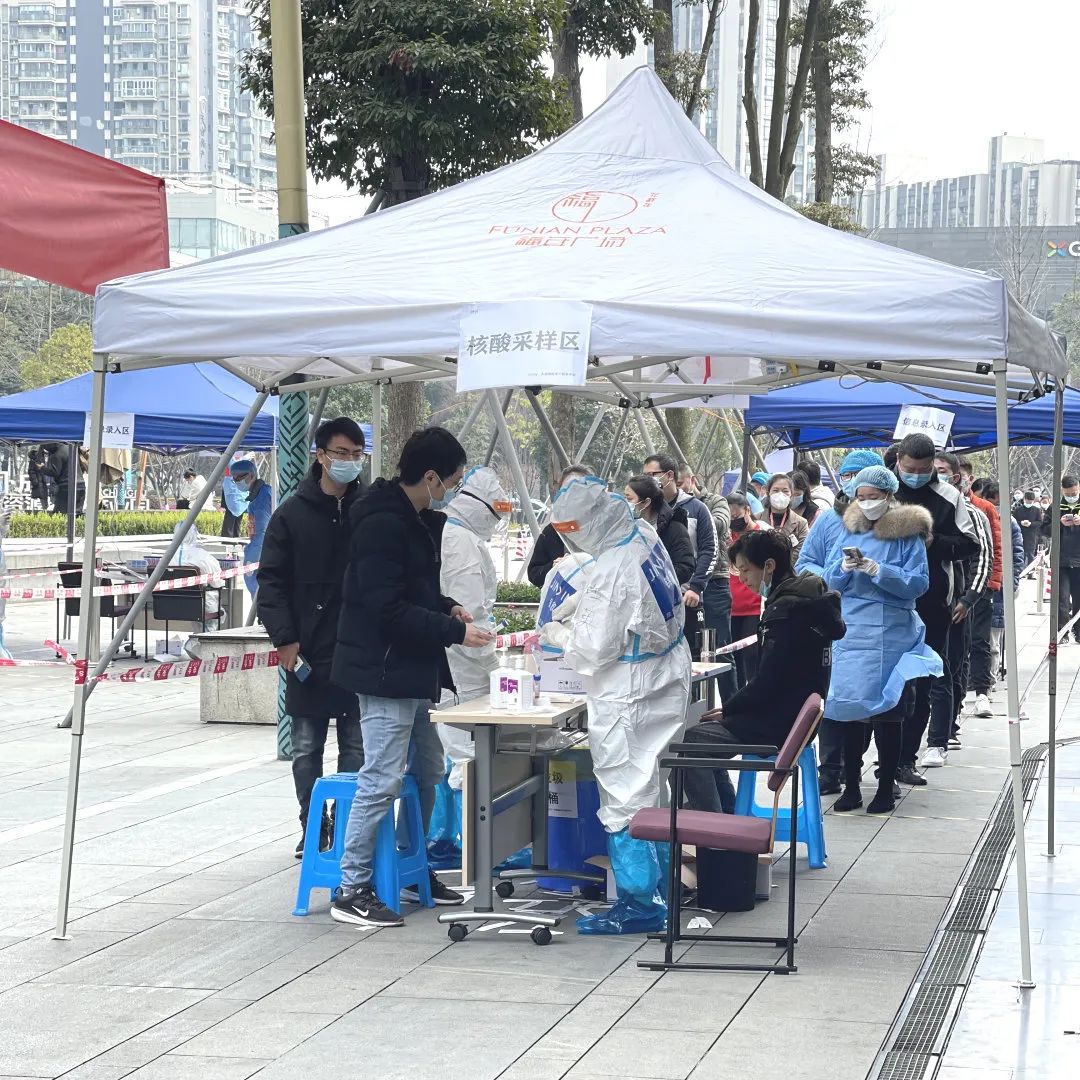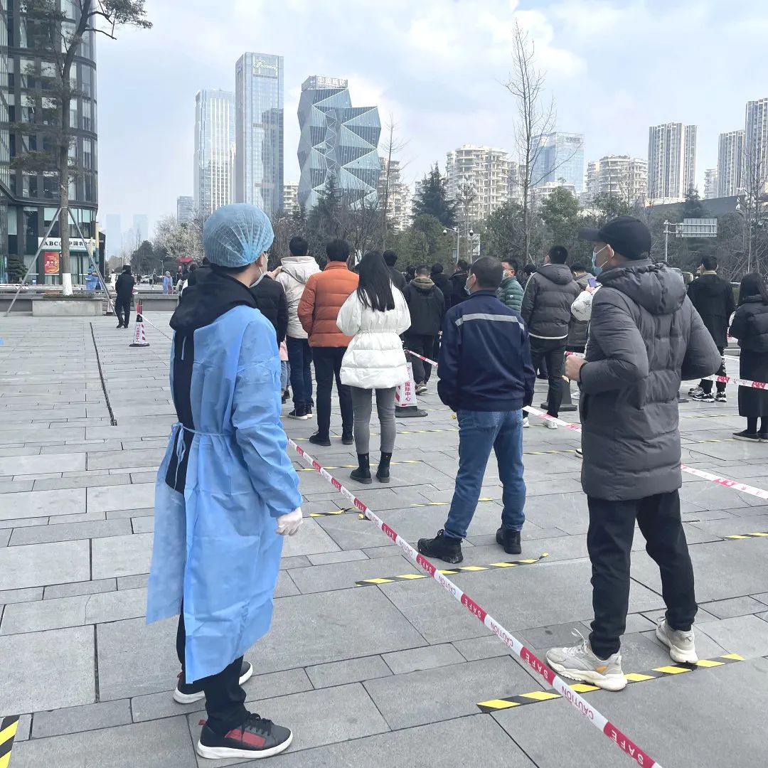 “請聽從工作人員安排、保持一米間距……”在高新區(qū)國際人才城核酸監(jiān)測點(diǎn),大喇叭里正循環(huán)播報(bào)著溫馨提示。國浩成都黨員律師身著藍(lán)色防護(hù)服,和其他參與抗疫的志愿者一起,布置現(xiàn)場、維持秩序、引導(dǎo)居民掃碼、幫助醫(yī)護(hù)人員登記居民身份信息。中間沒有絲毫休息,一批居民離去,陸續(xù)趕來的居民又不斷匯集起來,直至夜幕降臨,志愿者們才紛紛找地方休息,不時(shí)捏腰捶腿,緩解疲勞。