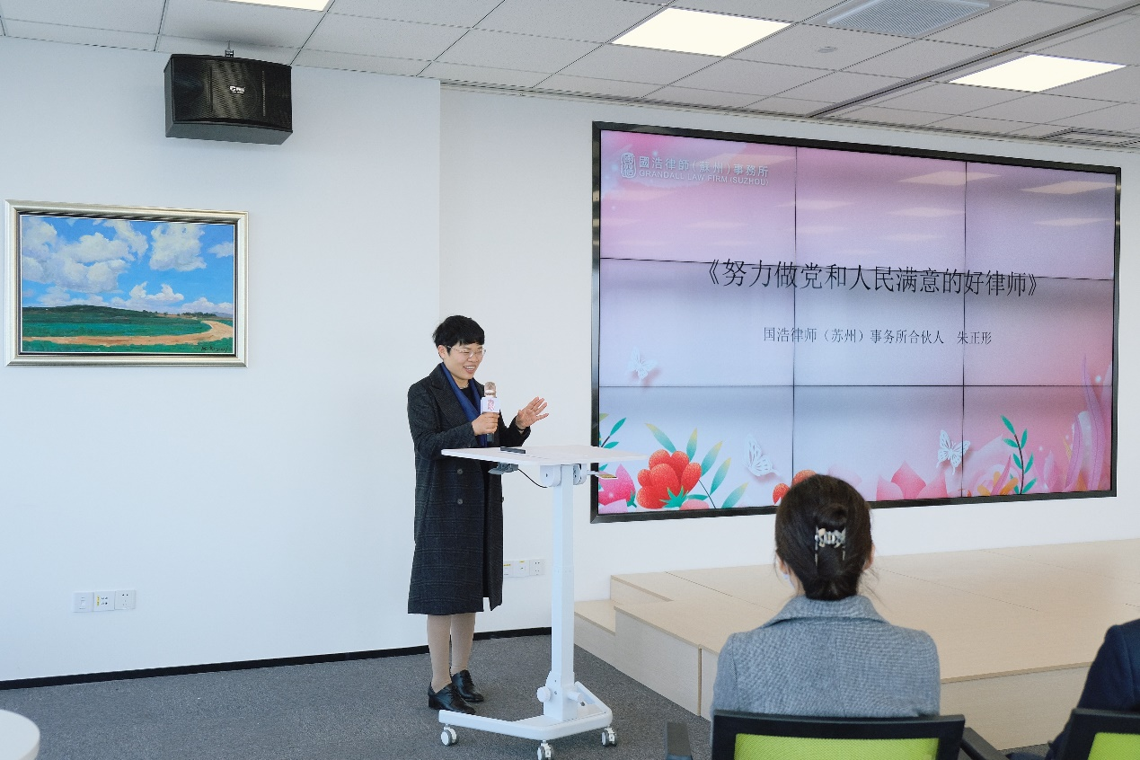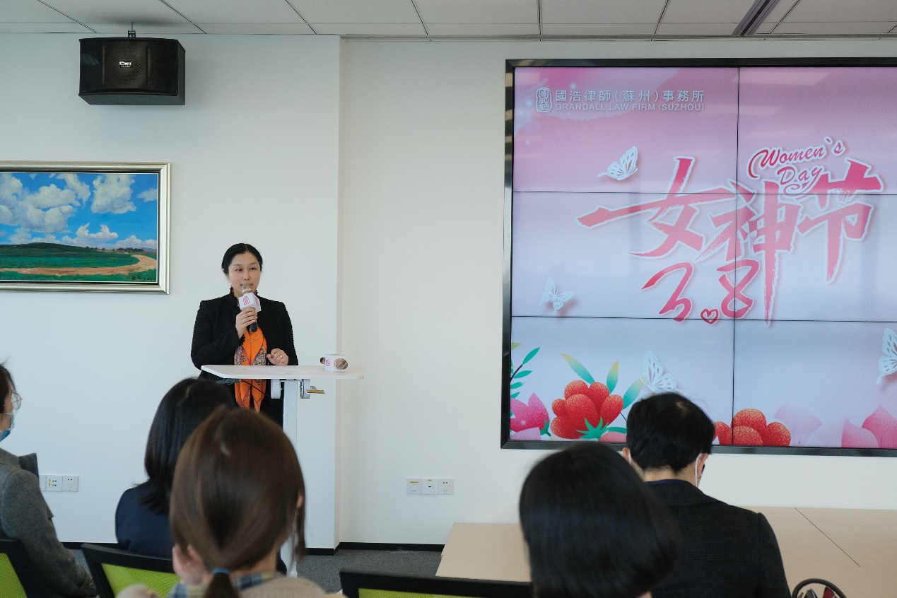 葛霞青主任向國浩蘇州50余名執業女律師表示了節日問候,感謝她們兼顧工作和家庭,在工作中盡職盡責、熱心公益,樹立了女律師良好的社會形象,期待本次活動能夠帶動更多的律師關注婦女權益保護。