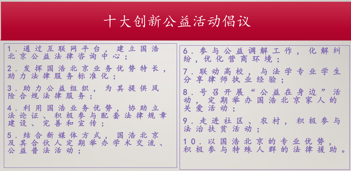 “國浩里 我有個我們”的MV發布為唱響“公益在國浩”的行動拉開了序幕, 積極號召國浩北京力量落實十大公益倡議,為法治公益發揮律師職業群體的力量,于點滴務實中踐行法治中國建設。