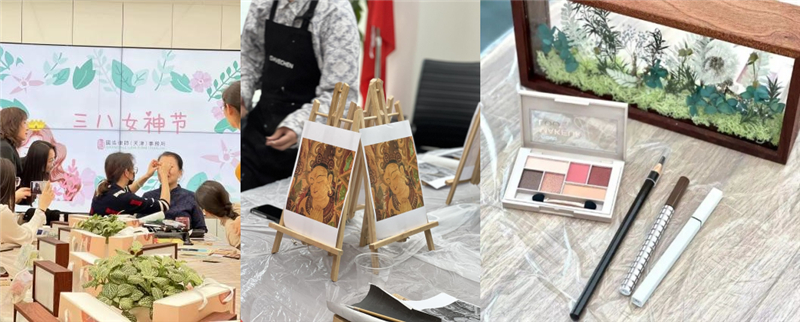 一場“美如天成,妝點(diǎn)靚麗”彩妝現(xiàn)場教學(xué),教大家打造更完美的自己,一起化出風(fēng)采,化出自信;一場敦煌石板畫DIY,令大家靜心臨摹、著色,沉浸式感受一眼千年的華夏瑰寶;一場復(fù)古相框永生花DIY,大家將花朵、枝葉靈活搭配,精心設(shè)計,發(fā)揮想象力,組合成自己獨(dú)一無二的搭配,放入復(fù)古相框,將美麗永久封存,赴一場花與時光之約。