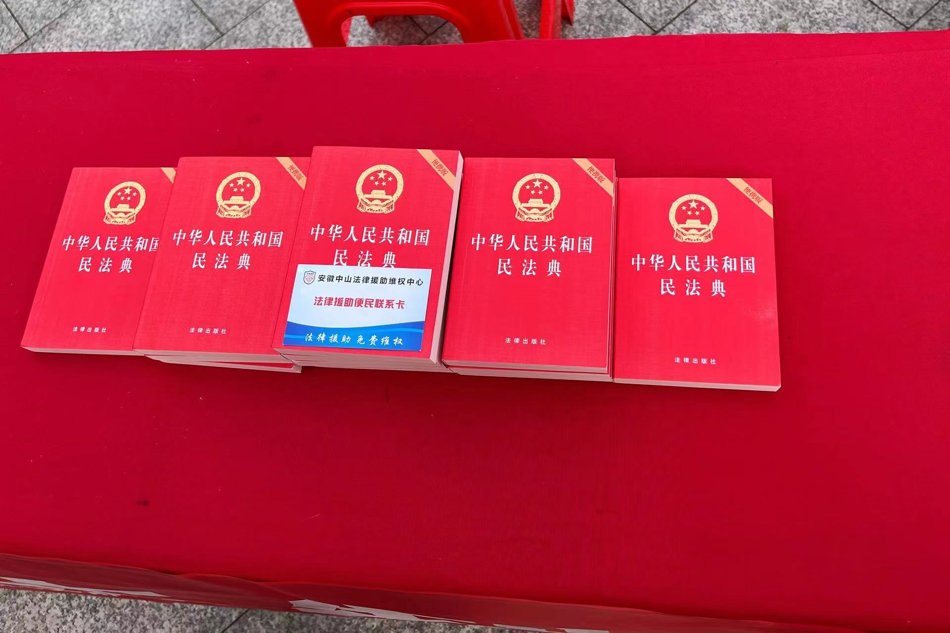 活動(dòng)現(xiàn)場(chǎng),國(guó)浩合肥律師和安徽中山法律援助維權(quán)中心工作人員提前準(zhǔn)備了《民法典》,助力本次普法活動(dòng)有序進(jìn)行。