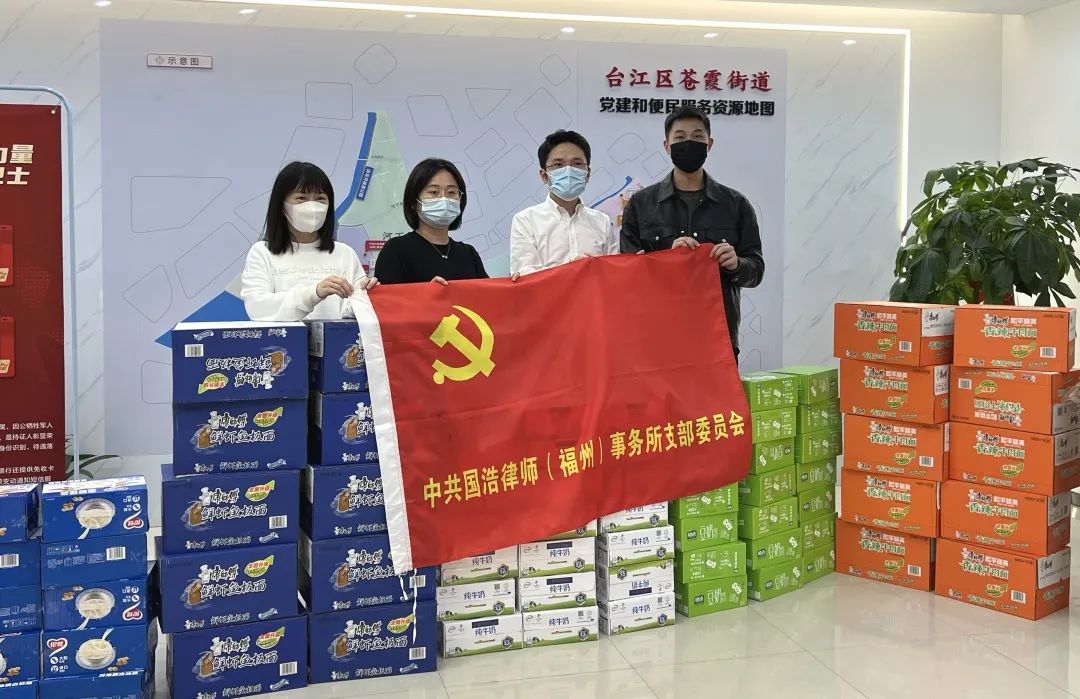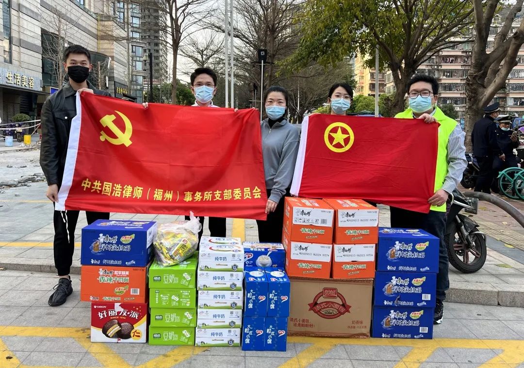 3月19日,中共國浩律師(福州)事務所支部委員會在第一時間向福州市臺江區人民政府蒼霞街道辦事處、上海街道辦事處、寧化街道辦事處提供物資,為一線抗疫人員提供后勤支援,讓防疫變得更“榕”易。