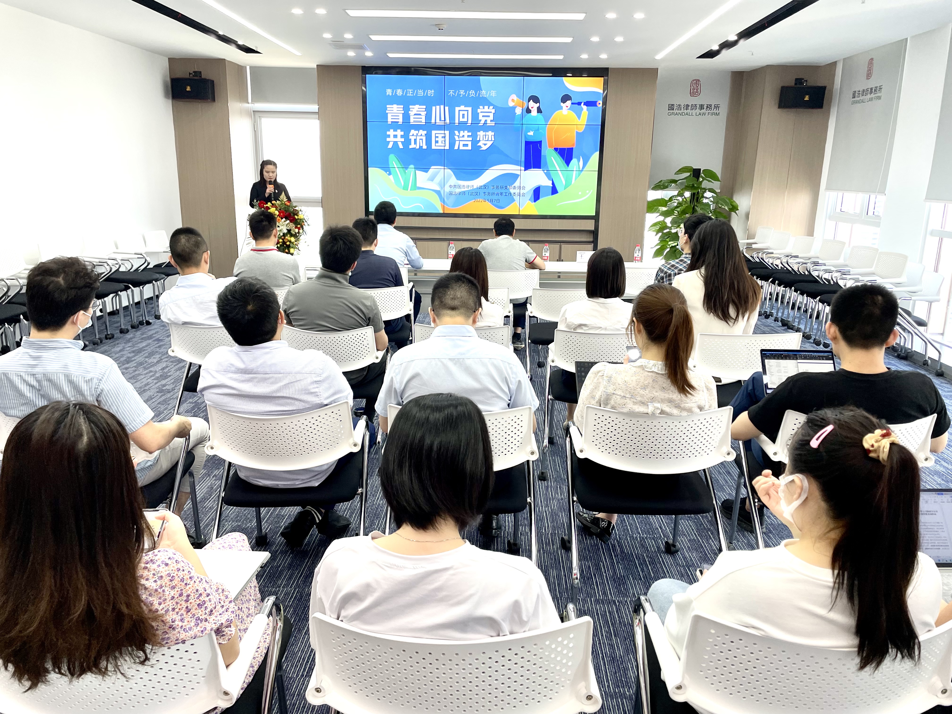 2022年5月7日,國浩武漢舉辦了國浩武漢青年律師講堂成立儀式暨“青春心向黨,共筑國浩夢”主題黨日活動。會上,國浩武漢“青年律師講堂”在國浩武漢黨支部的引領、國浩武漢青年律師工作委員會的協作下正式成立,以期在五四青年節之際,為青年律師提供成長和展示的舞臺,開啟國浩武漢青年律師培養特色化之路。