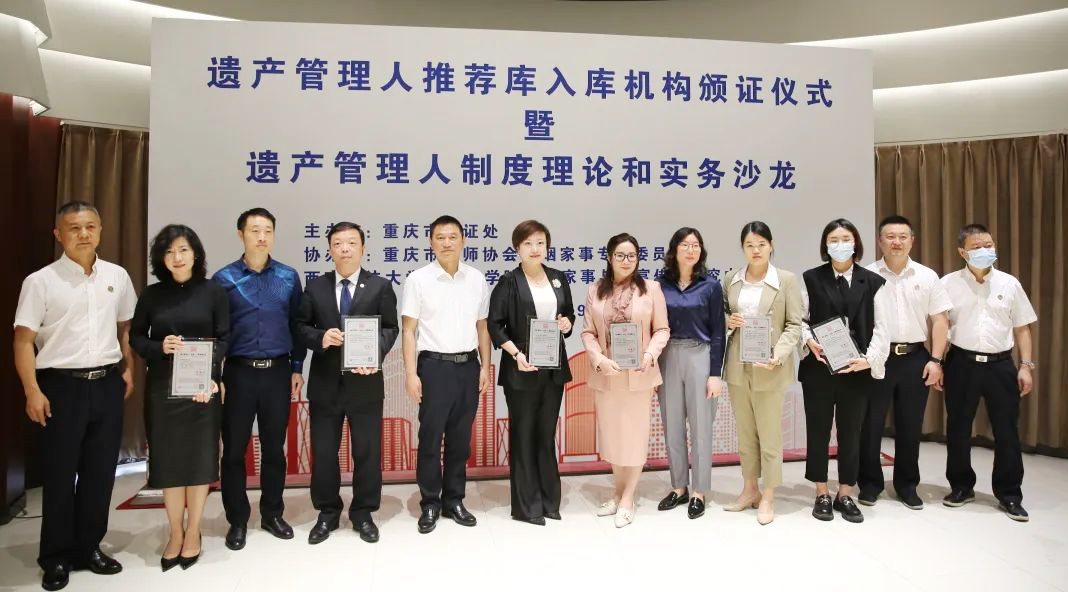2022年5月9日下午,由重慶市公證處主辦,重慶市律師協會婚姻家事專業委員會、西南政法大學民商法學院婚姻家事與財富傳承研究中心共同協辦的“重慶市遺產管理人推薦入庫機構頒證儀式暨遺產管理人制度理論和實務沙龍”在重慶市公證處成功召開。經研究評定,國浩重慶辦公室成為重慶市公證處“遺產管理人數據庫”首批入庫機構,國浩家族財富管理業務委員會暨法律研究中心副主任、國浩重慶合伙人喬一清出席活動并作主題分享。