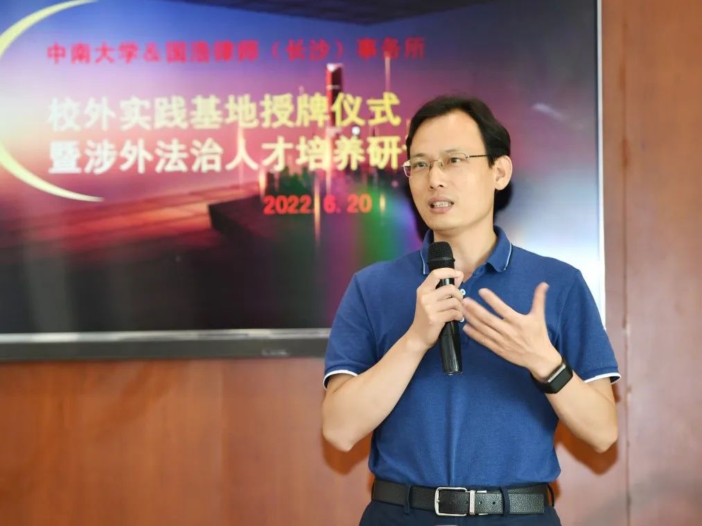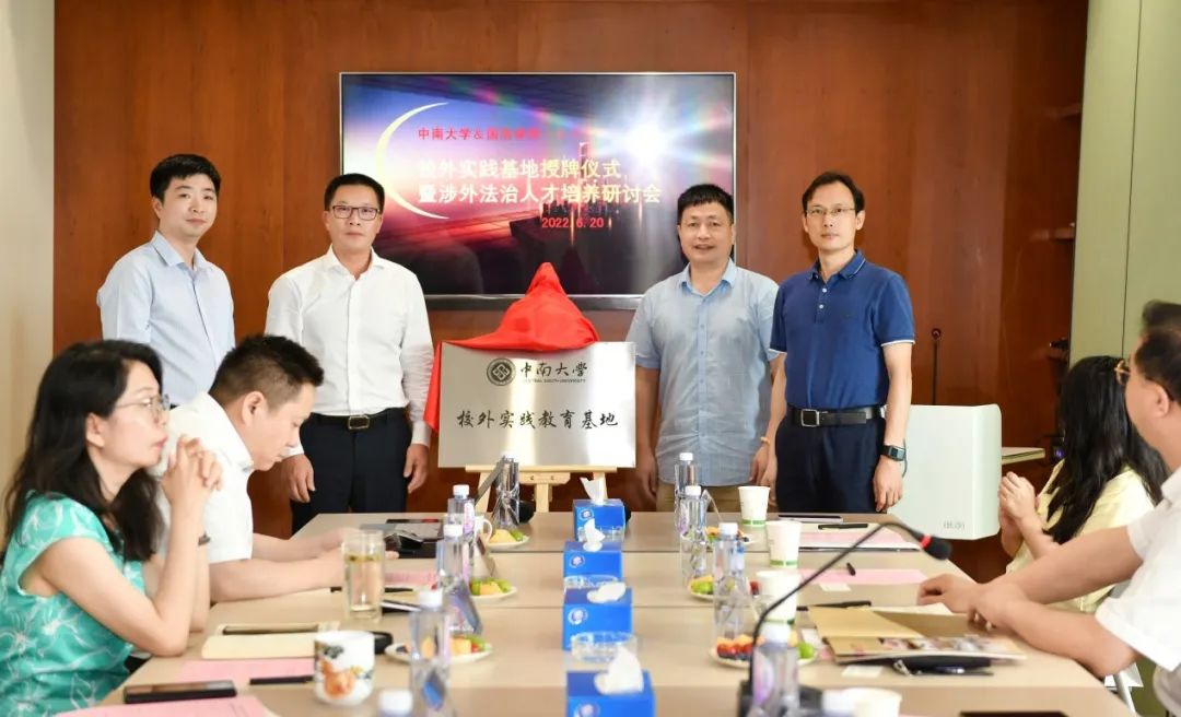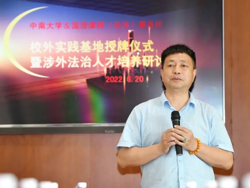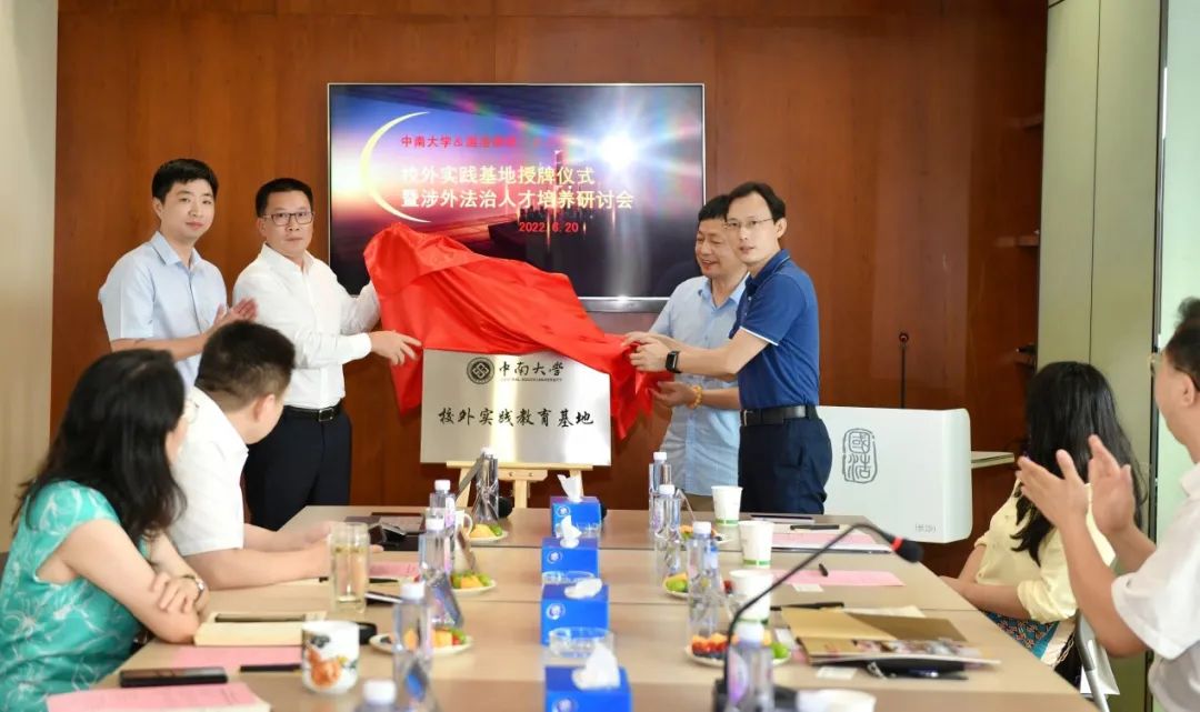 為加強人才培養與交流,積極推動法學教育與實踐等重要育人環節合作,6月20日,國浩長沙辦公室與中南大學舉行校外實踐基地授牌儀式暨涉外法治人才培養研討會。中南大學法學院黨委書記毛俊響,副院長敖雙紅、彭中禮,黨委副書記黃曦,國際法研究所所長鄧婷婷,本科生院主任李國振,國浩長沙管理合伙人、主任羅崢,合伙人羅德、黃軼、金笑、劉興康、夏建麗共同出席授牌儀式和研討會。