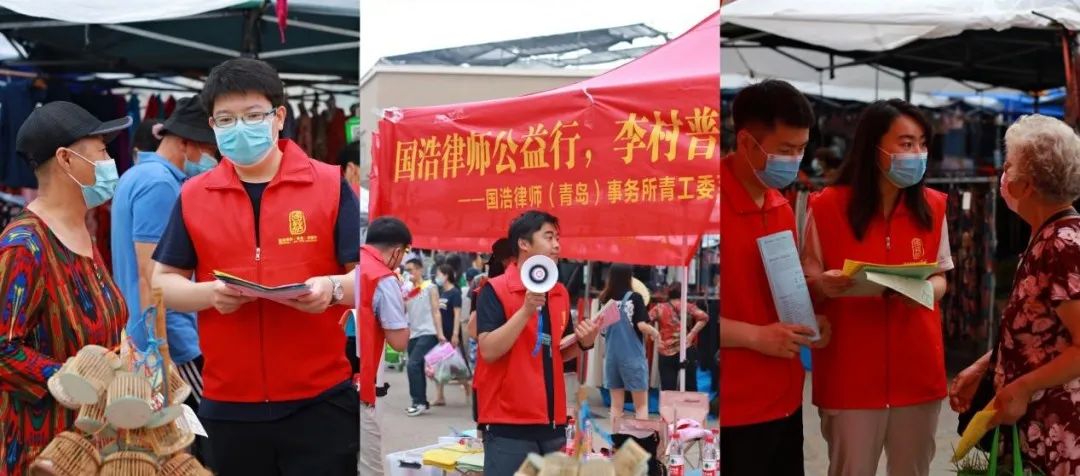 為推動法治觀念深入人心,2022年7月10日,國浩青島辦公室聯合青島李村大集農貿市場管理所開展了一場熱火朝天的公益普法宣傳活動。本次活動是國浩青島青年律師工作委員會系列普法活動的第一站,國浩青島十余名青年律師參加了活動。