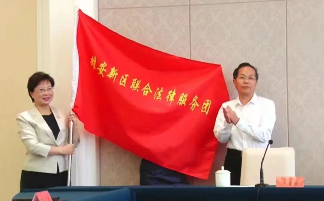 7月6日上午,雄安新區聯合法律服務團成立大會在河北太行國賓館舉行,河北省司法廳副廳長彭敬捷、二級巡視員孟相維出席會議,徐文莉律師作為服務團代表接受授旗并發言。