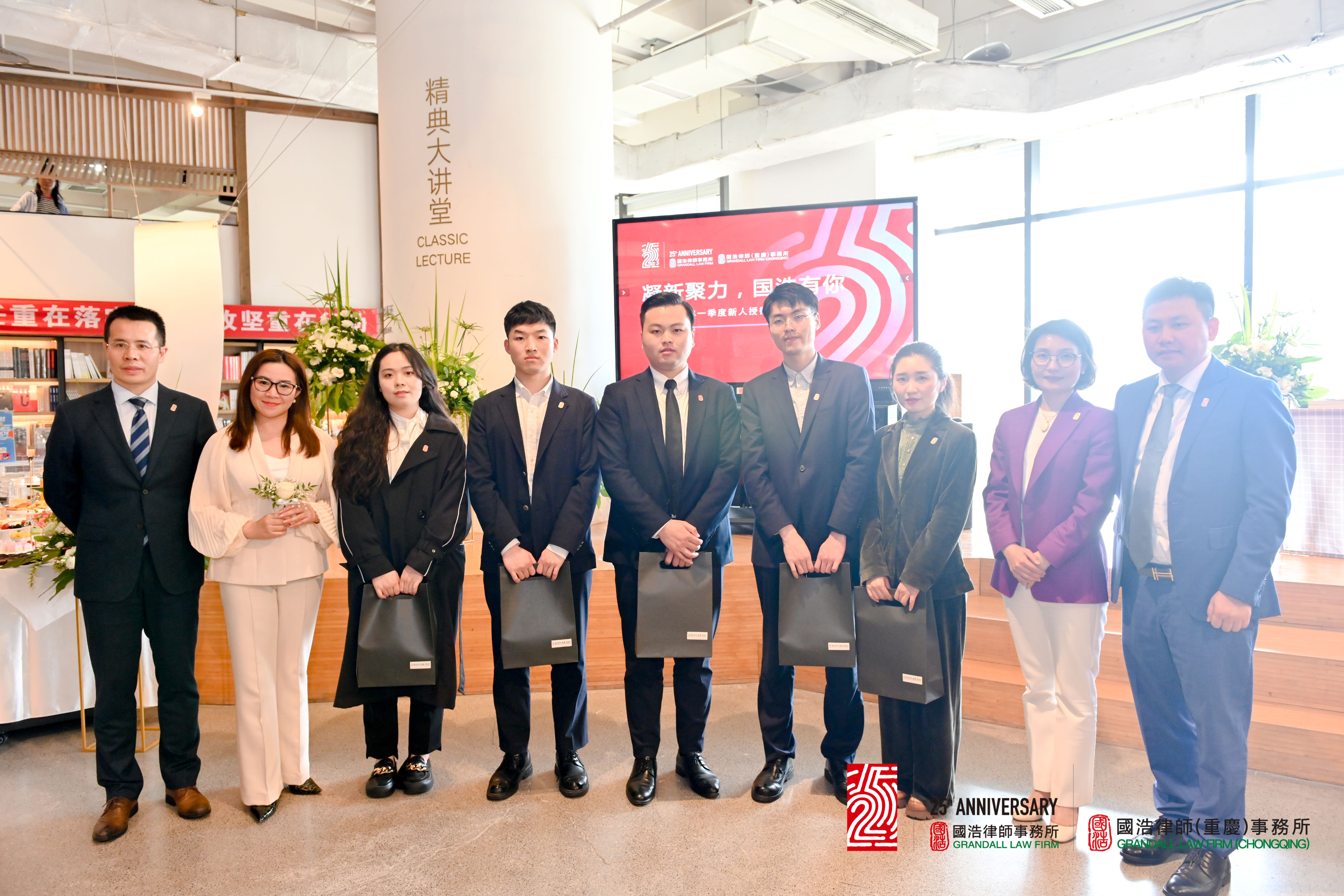 活動中還特別穿插了兩輪抽獎互動環節,共18位同事獲得了由嘉賓們分享并推薦的好書。每季度舉辦一次的新人授徽儀式也同步舉辦,在濃烈的書香氛圍里,國浩重慶新人們被授予國浩徽章及新人禮,感受這份專屬于國浩人的榮耀與驕傲。