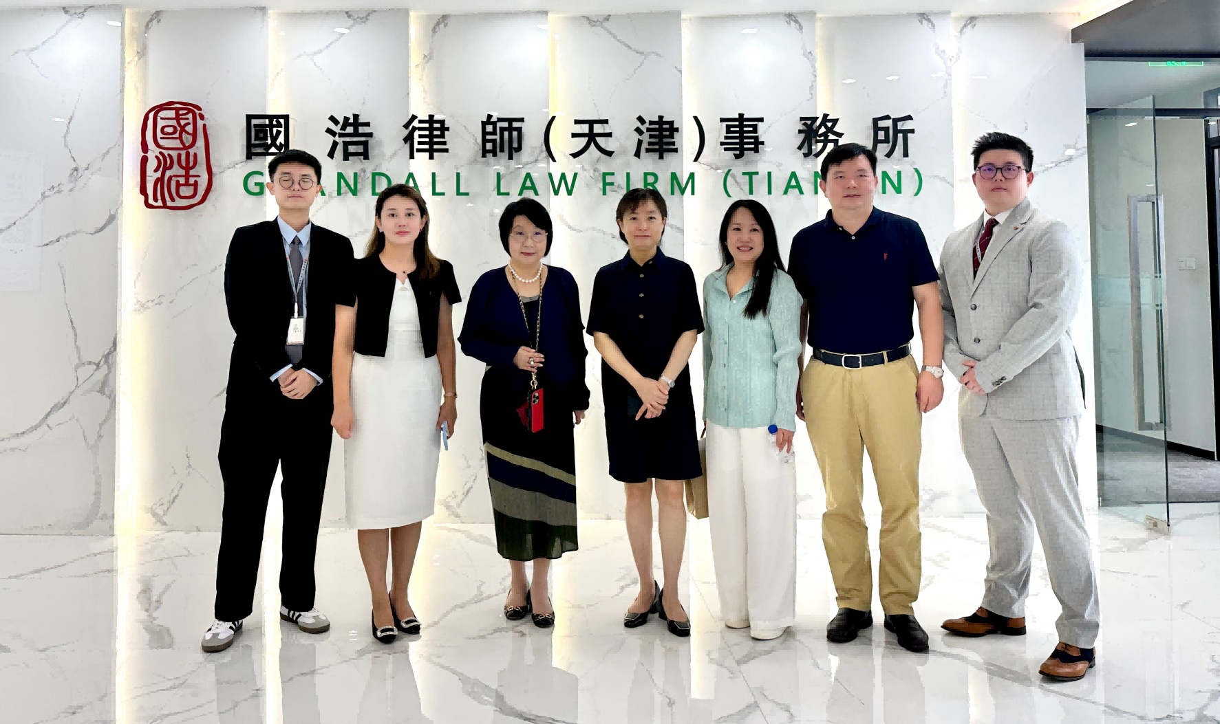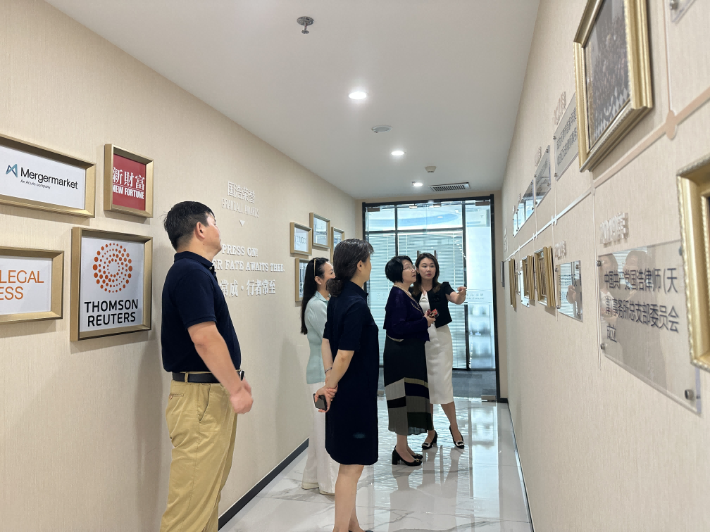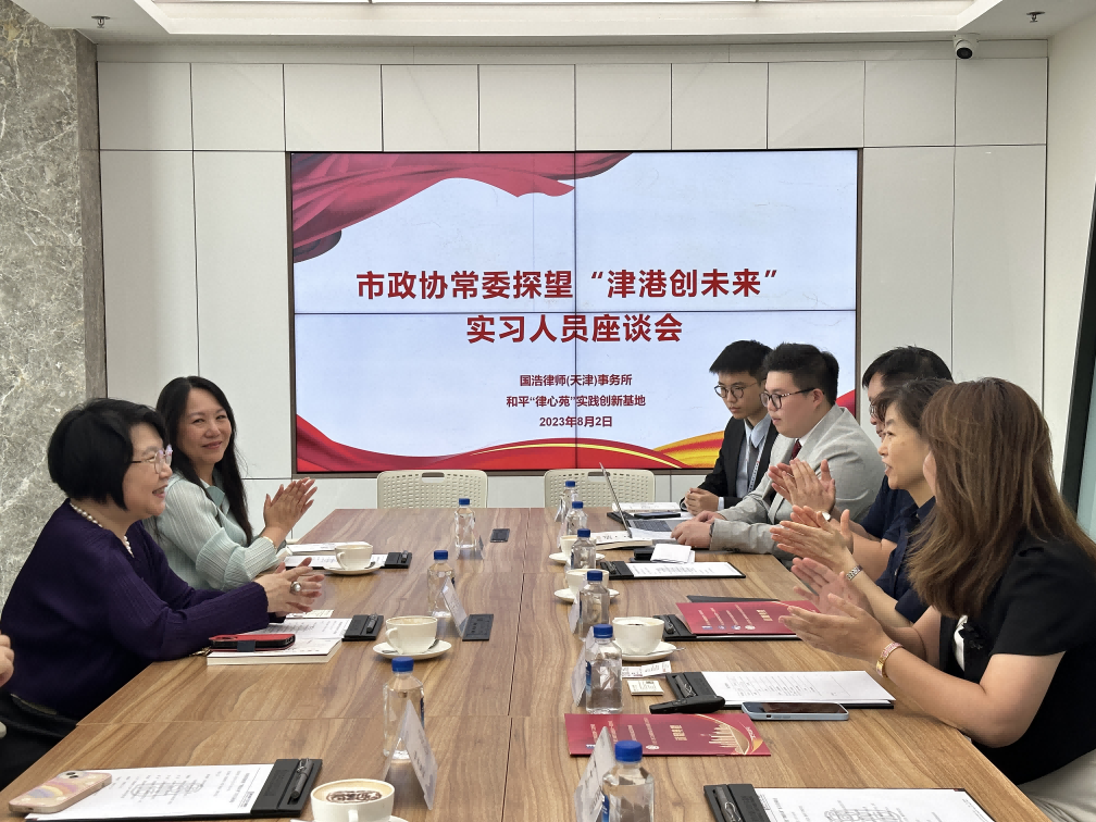 8月2日,天津市政協常委、香港天津工商專業婦女委員會會長、香港太平紳士蔡關頴琴、香港天津工商專業婦女委員會執行副主席(侯任)陳勄如由天津市和平區委常委、統戰部部長張莉陪同,蒞臨國浩天津探望“津港創未來”香港實習團成員陳翰林、李俊彥。國浩天津管理合伙人、主任梁爽,管理合伙人蔣宏建,行政主管王倩陪同參觀律所并座談交流。