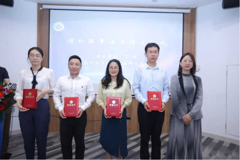 一屆三次理事會議暨臨時會員代表大會進行了選舉,增補了國浩青島律師助理孟繁鑫為青島市法學會破產法研究會理事,丁燕會長為新當選理事頒發了理事證書。
