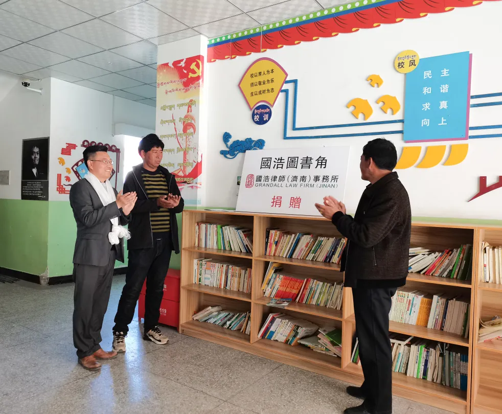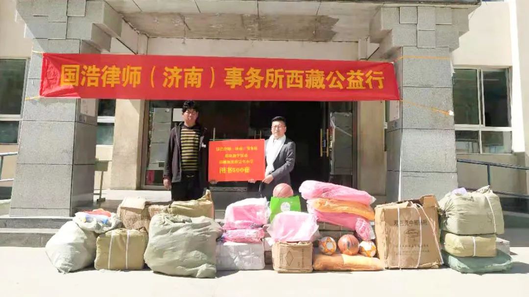 2021年5月14日下午,“援藏律師服務團”成員、國浩濟南律師代表張超走進西藏日喀則市桑珠孜區(qū)加慶孜完全小學,開展了“西藏公益進校園”活動。國浩濟南辦公室向?qū)W校捐助了價值近2萬元的圖書500套,專門用于營建“國浩讀書角”。這些圖書極大豐富孩子們課外讀物種類,有助于孩子們開拓視野。