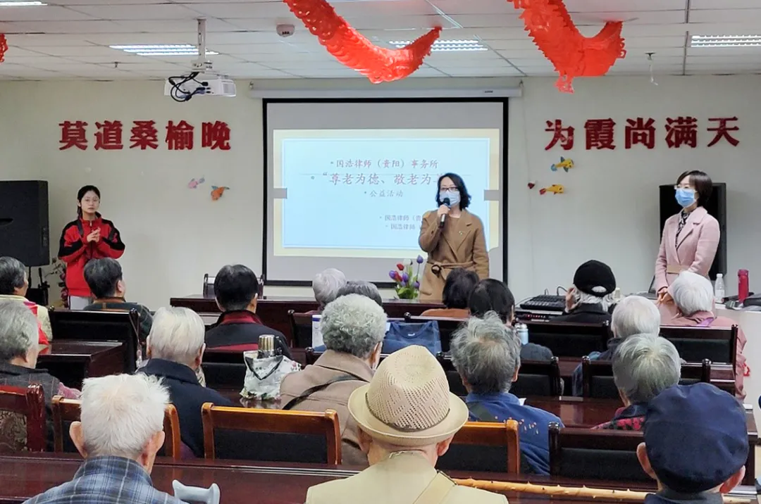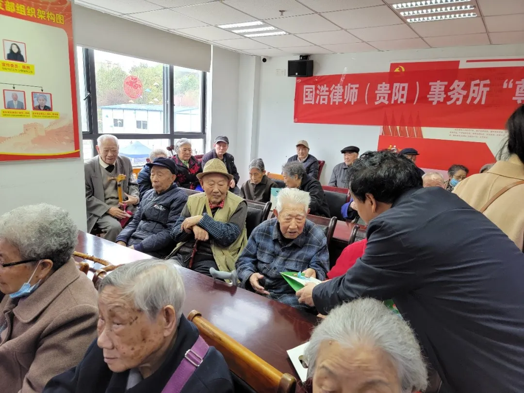 活動伊始,蘭鋼律師、涂丹律師首先作了開場致辭。他們表示,尊老愛幼是中華民族的傳統美德,保護老年人的合法權益是關愛老人的一項重要內容。國浩貴陽黨支部組織了本次活動,旨在表達對老人們的謝意和敬意,并希望能夠在為老人們提供權益保護方面的法律咨詢的同時,為其生活增添一絲暖意,帶來一份快樂。